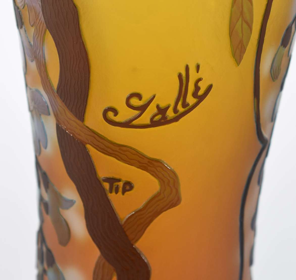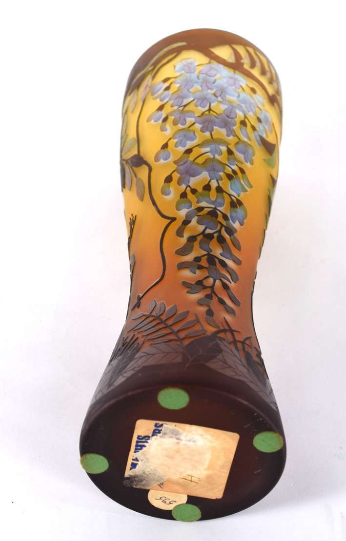 Vaso de vidro decorativo nas cores azul e âmbar.