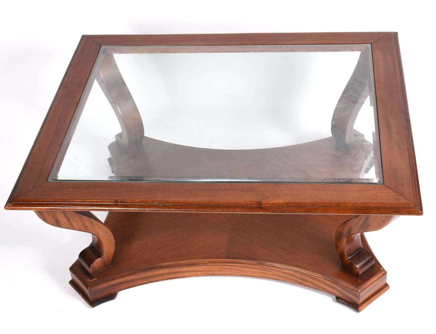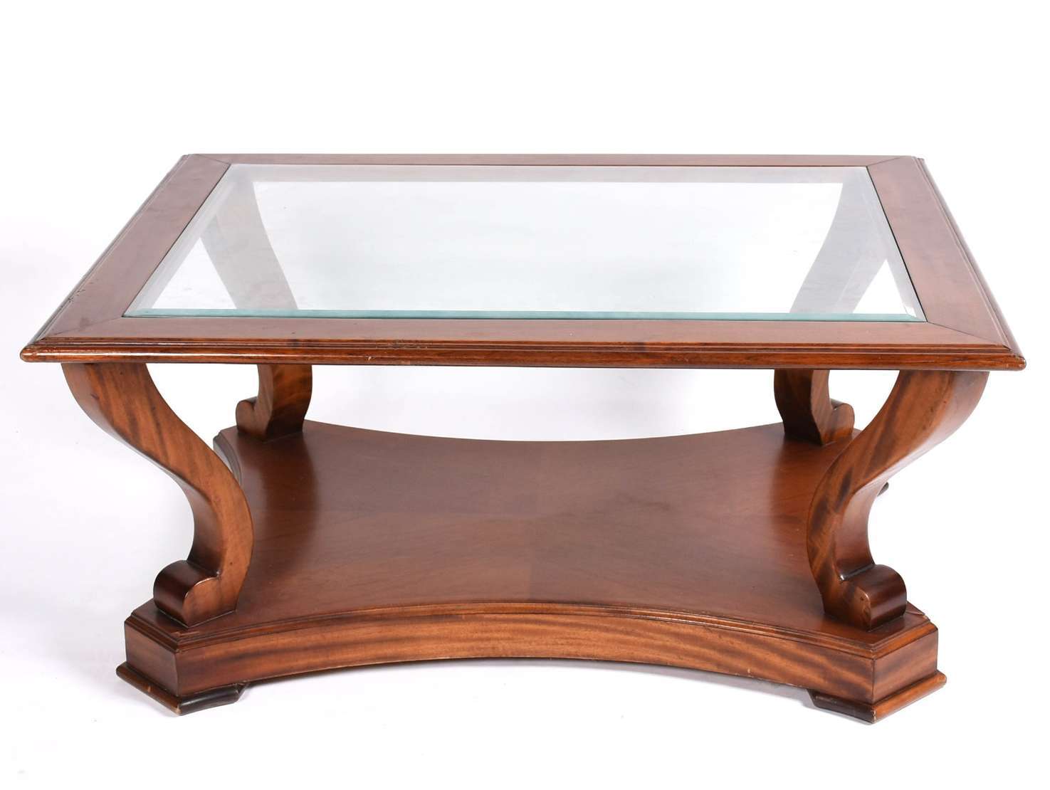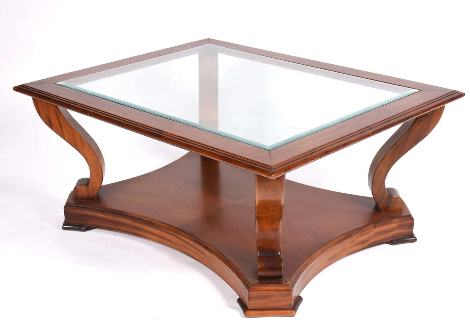 Mesa auxiliar de madeira nobre, dita "cake table" com dois platôs.