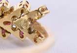Anel de ouro 18 k contraste 750 maleável com safiras brancas e rubi, aro 17 (Por motivos de seguranças as peças não encontram-se na loja)