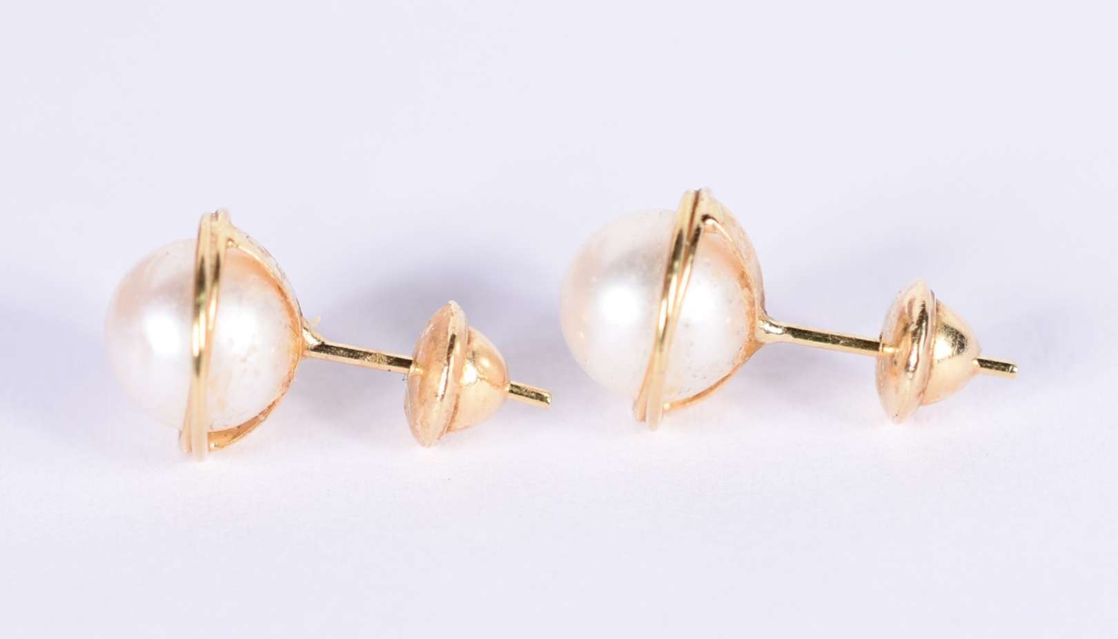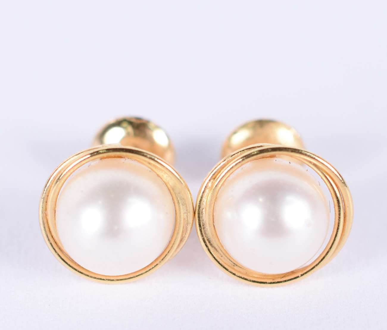 Broche no feitio coroa com 5 perolas e 4 brilhantes em dois tons de ouro (Por motivos de segurança as peças não encon...