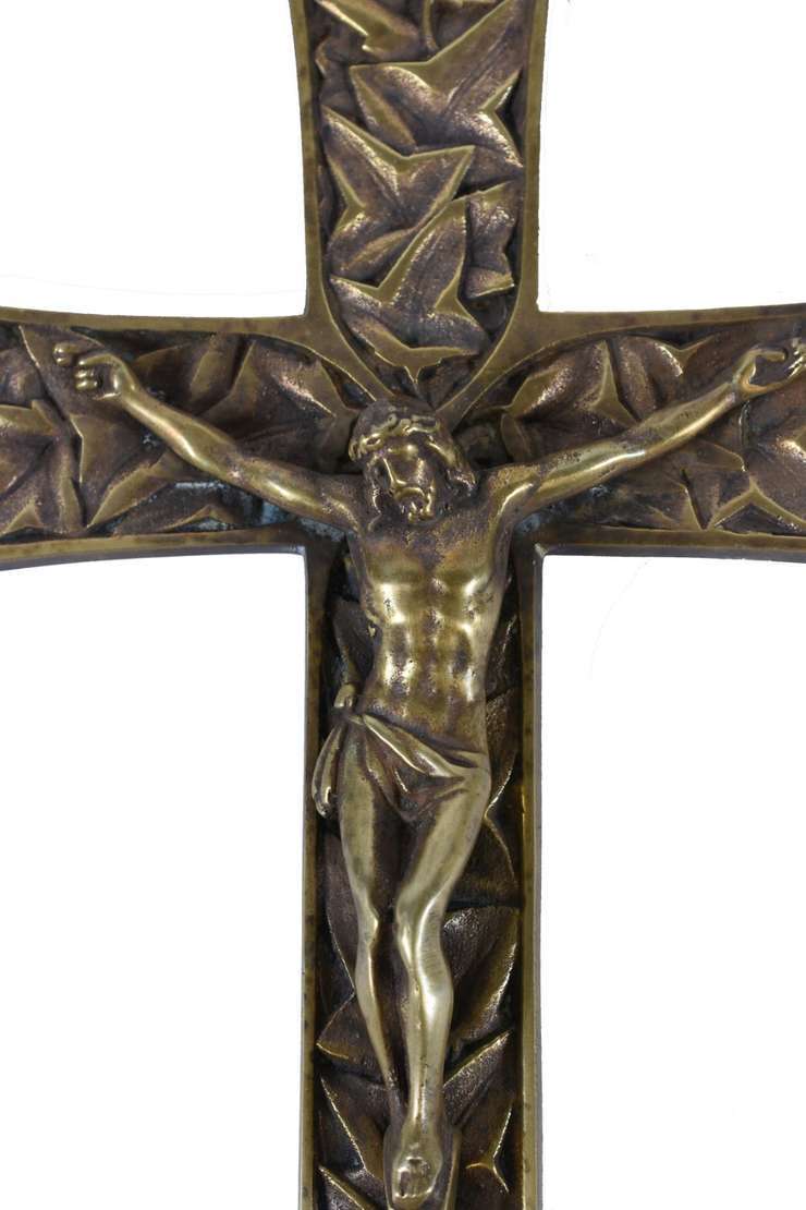 Excepcional Crucifixo de madeira nobre com figura de Cristo esculpida em marfim, gotas de rubi, resplendor de prata, ...