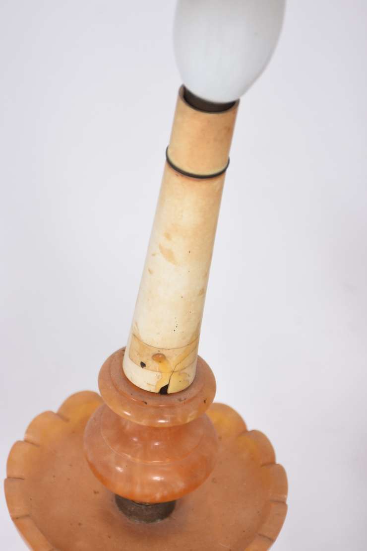 Luminária com base de petit bronze representando figura feminina.