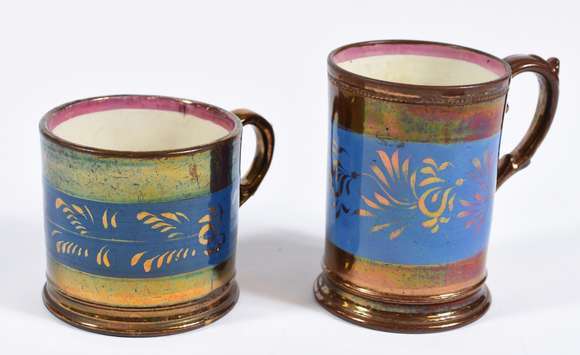 Duas canecas de faiança "Cup Luster" , século XIX (com batidas).