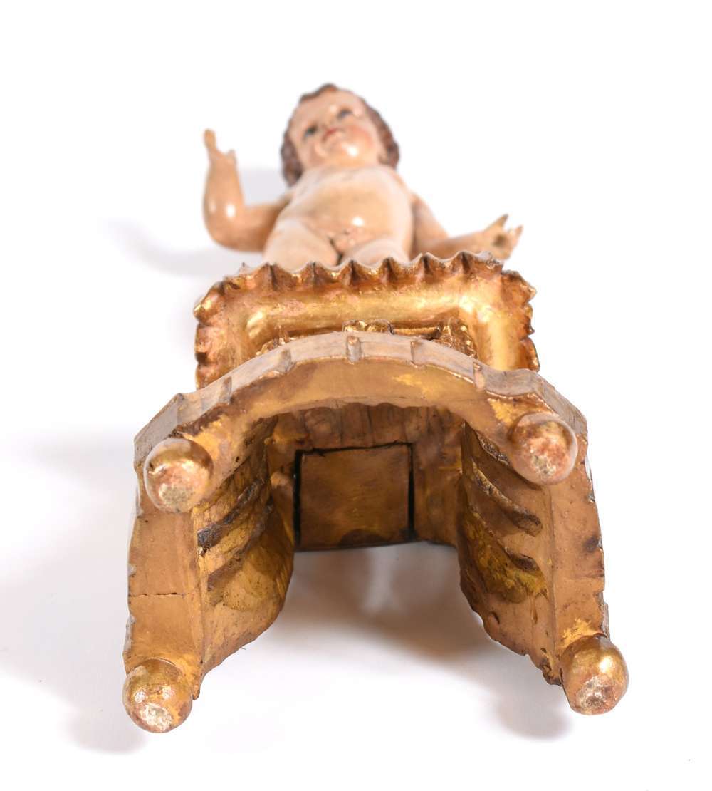 Rara Imagem do menino Jesus na manjedoura em bronze artístico. Assinado.