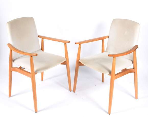 Duas poltronas estofadas, sendo uma harper com pés de madeira da loja TOK STOK e outra com estofado amarelo (modelos ...