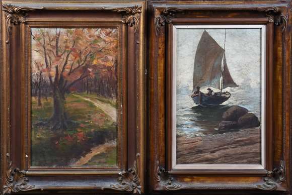 óleo sobre tela - dois quadros com molduras entalhadas.