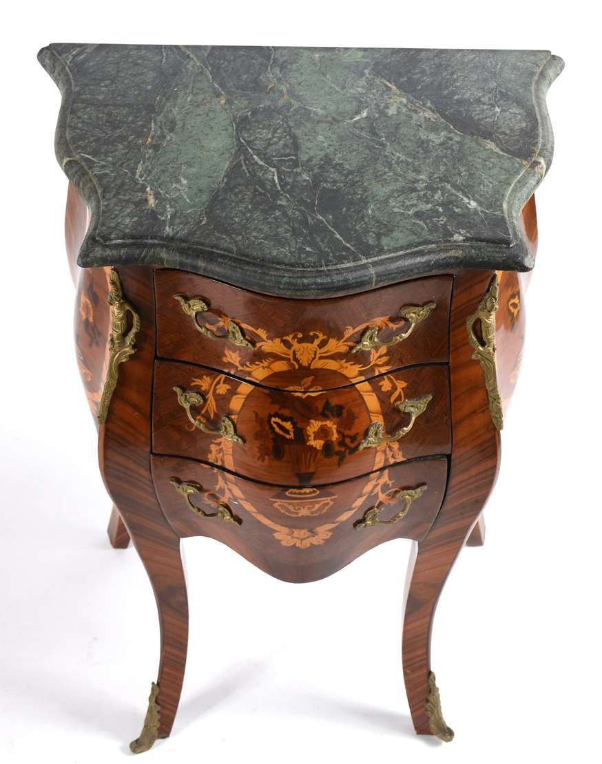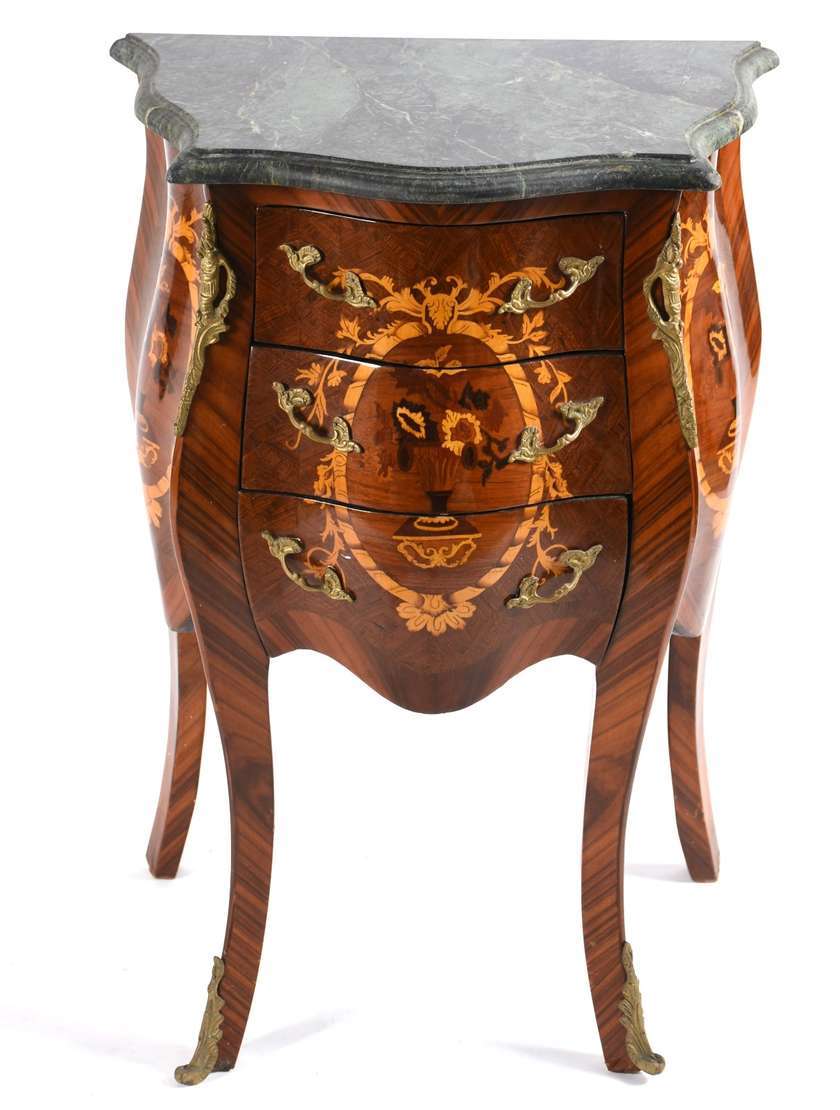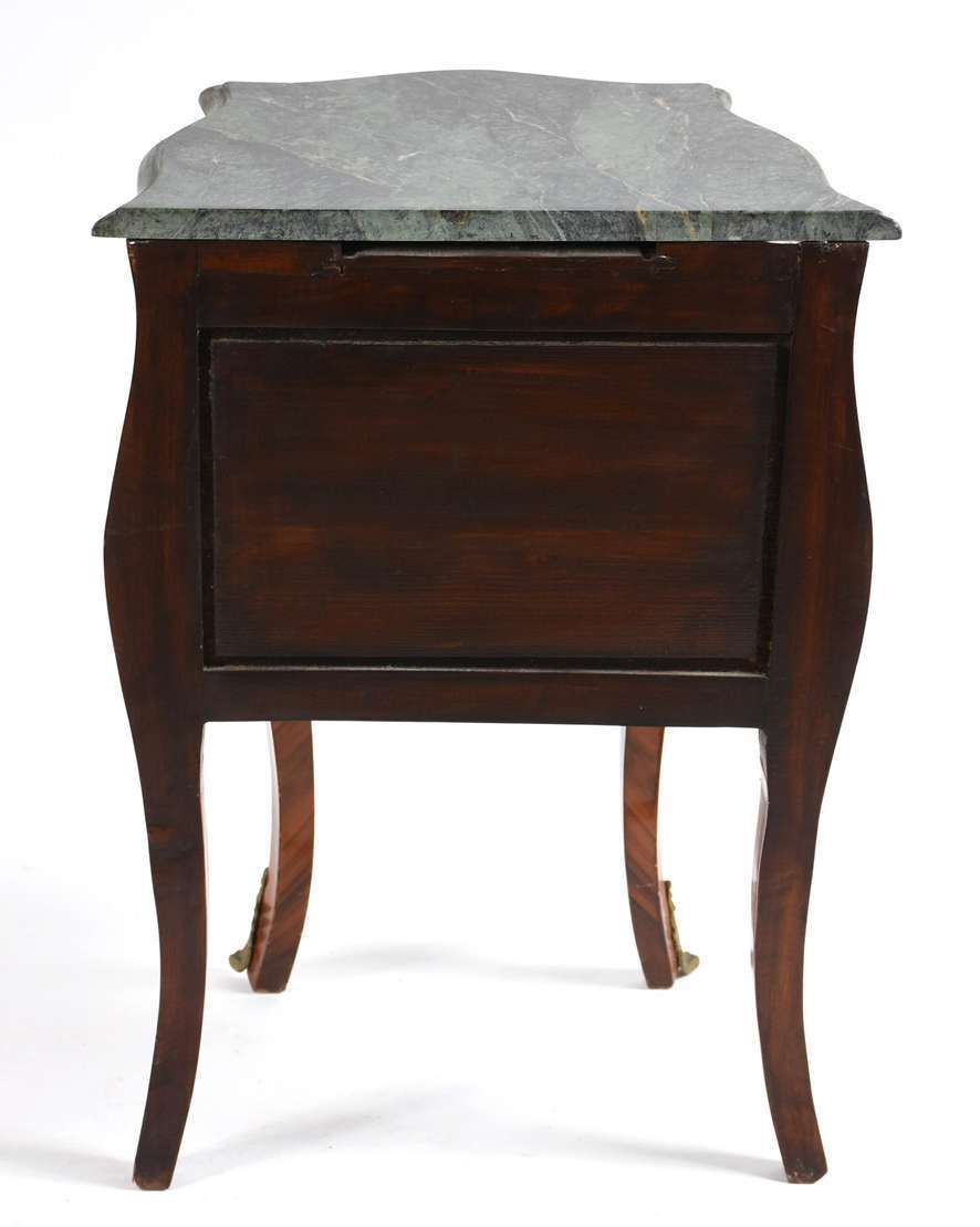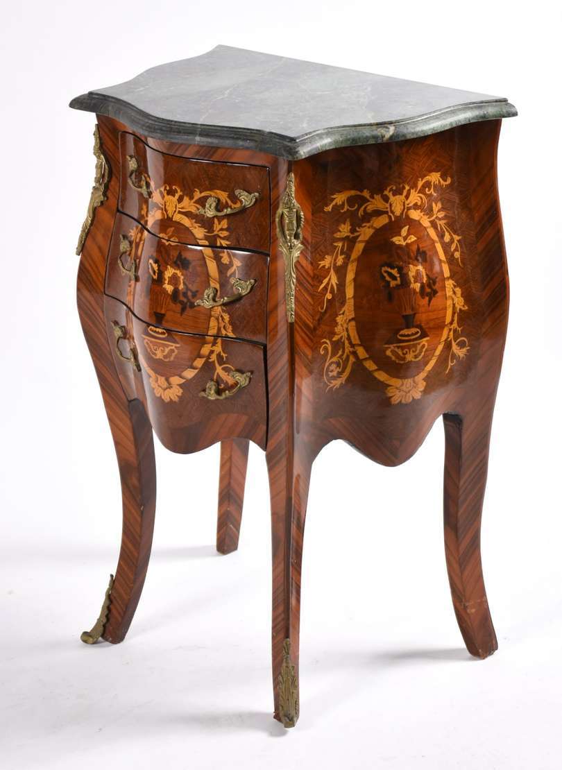 Aparador feitio meia lua de madeira nobre entalhada e dourada, tampo de mármore. Acompanha espelho de cristal bisotad...
