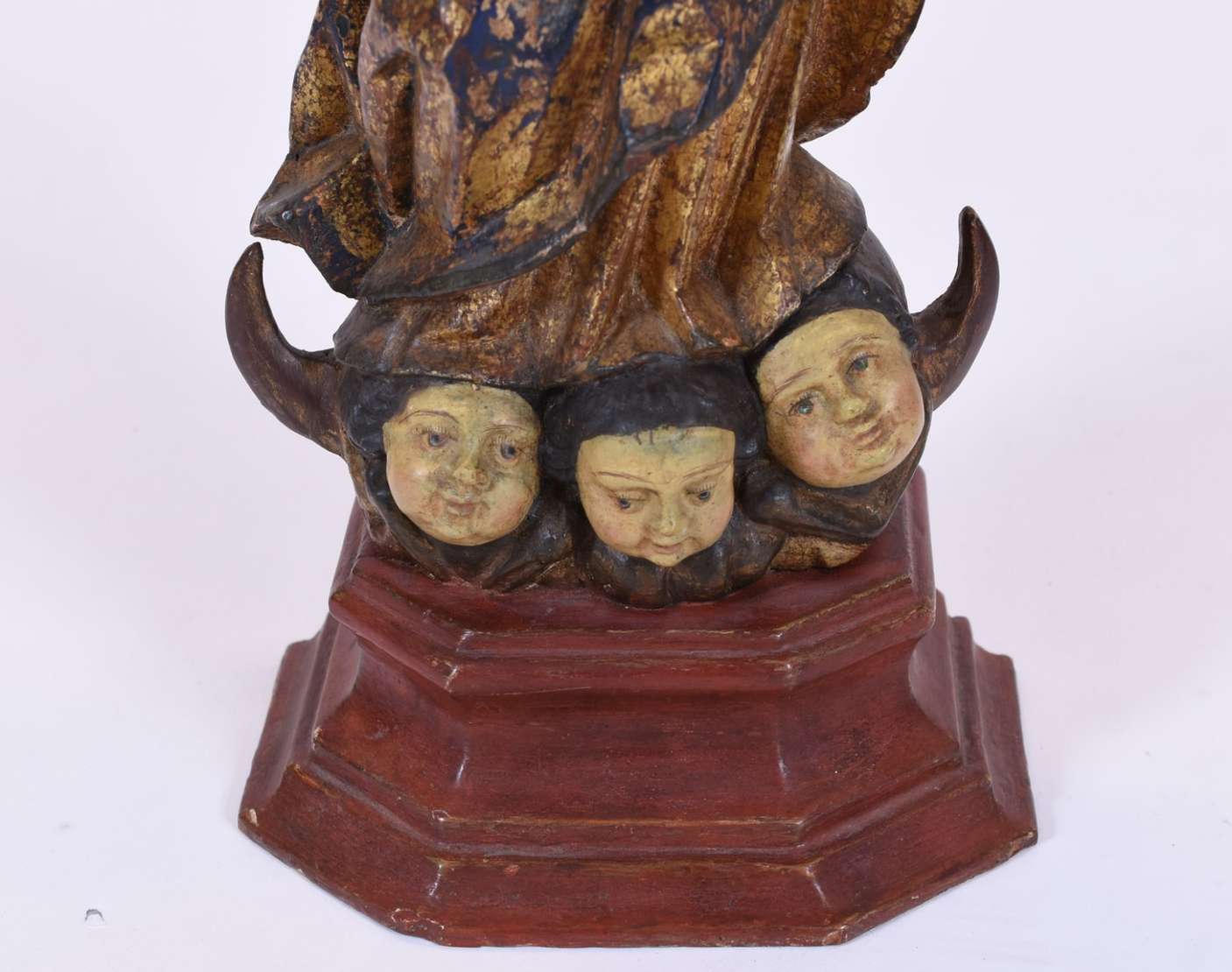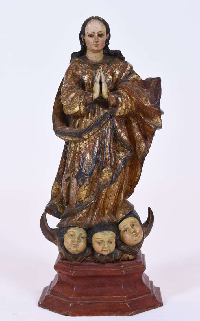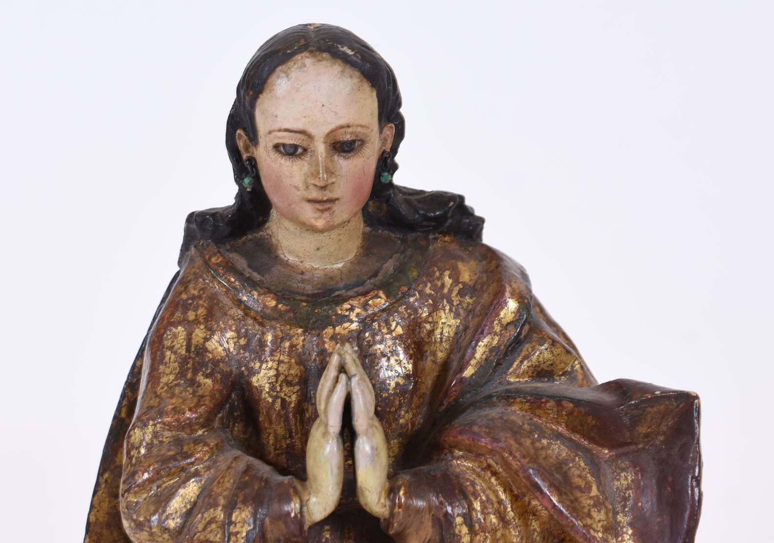 Imagem de Nossa Senhora menina de madeira policromada e dourada.