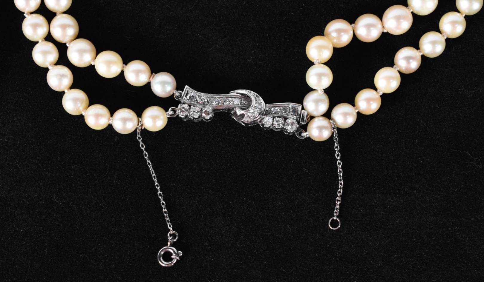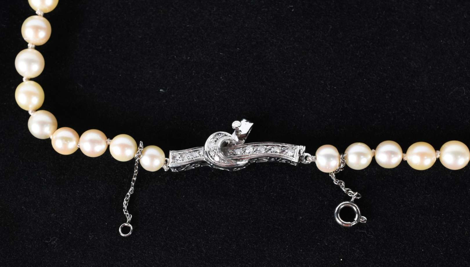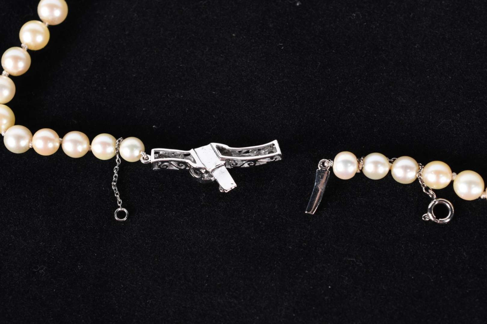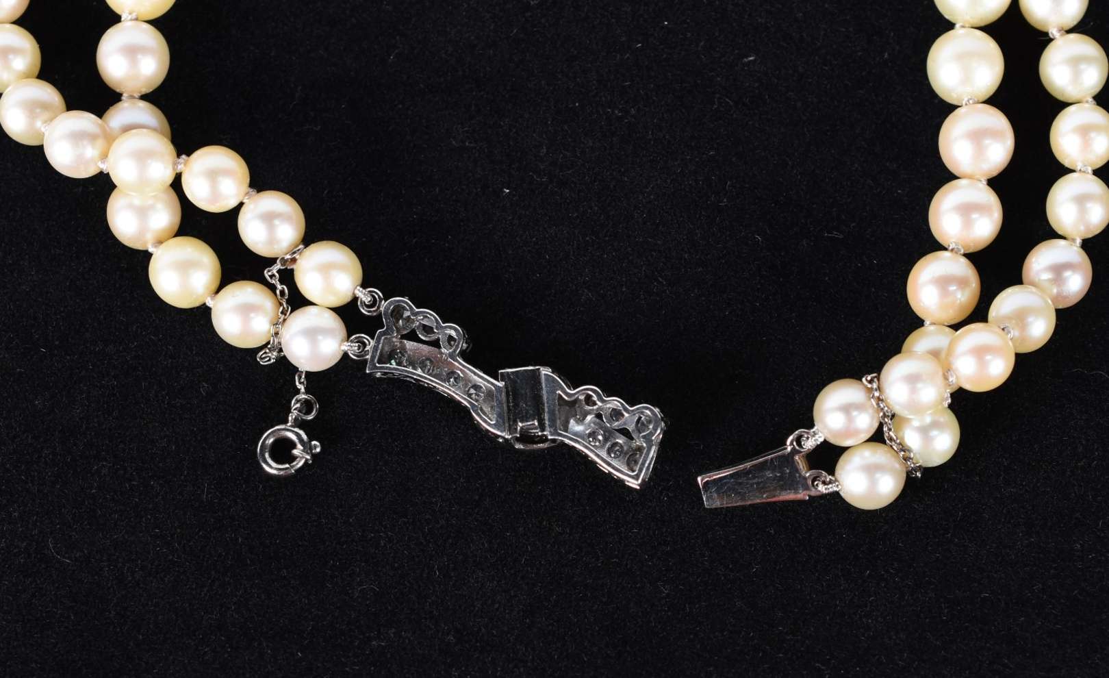 Anel de ouro 18 k, contraste 750, cravejado de brilhantes e 2 perolas, aro 17 (Por motivos de segurança as peças não...