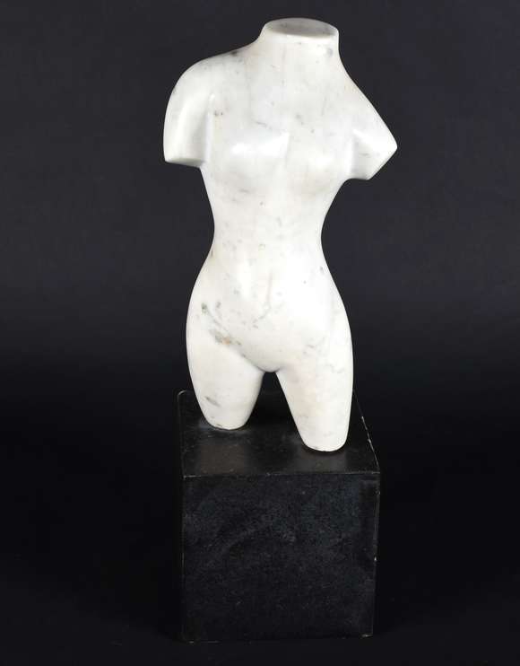 Escultura em mármore, assinada.Medida da escultura: 32 cm/ Medida total: 48 cm.