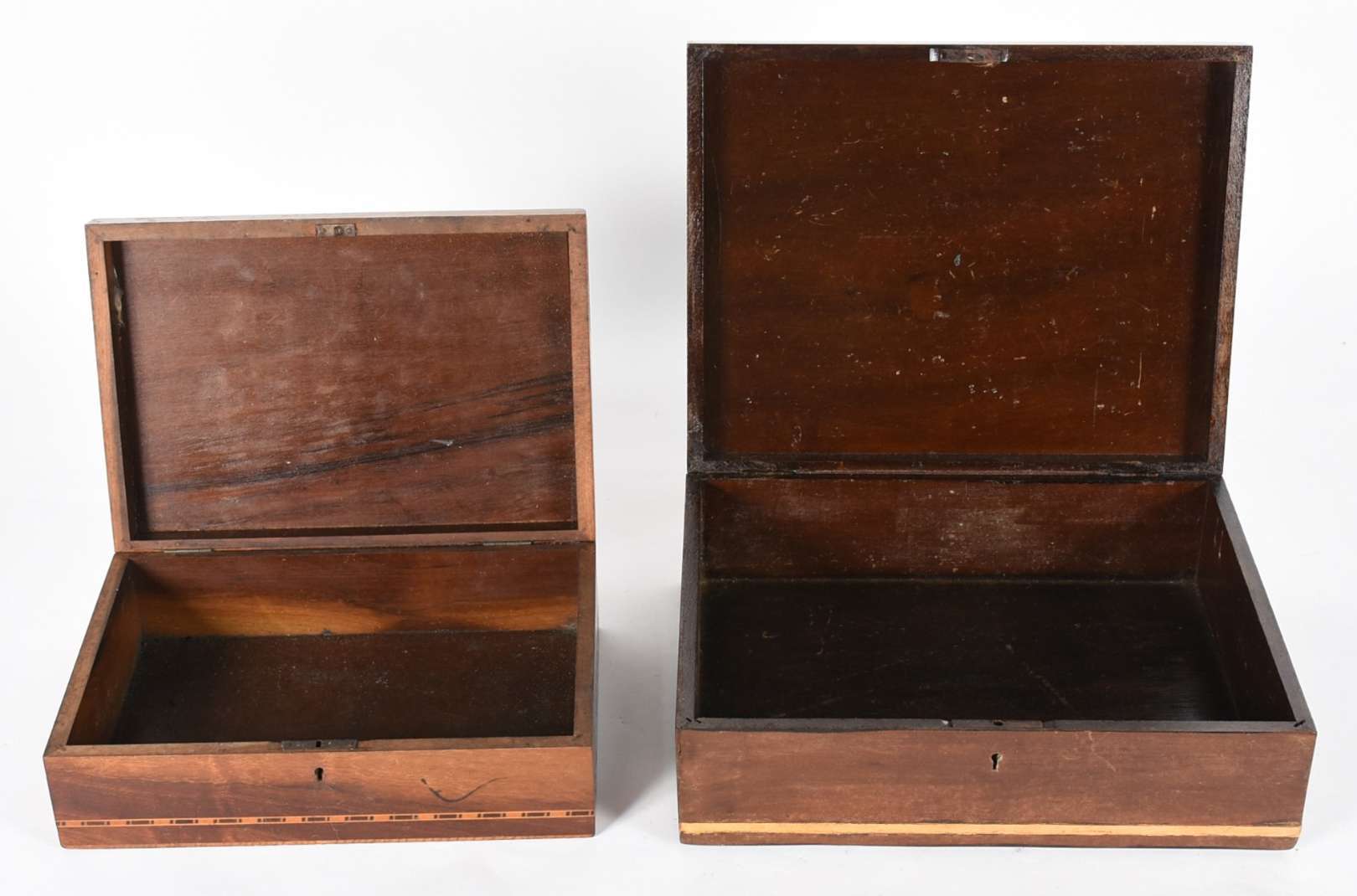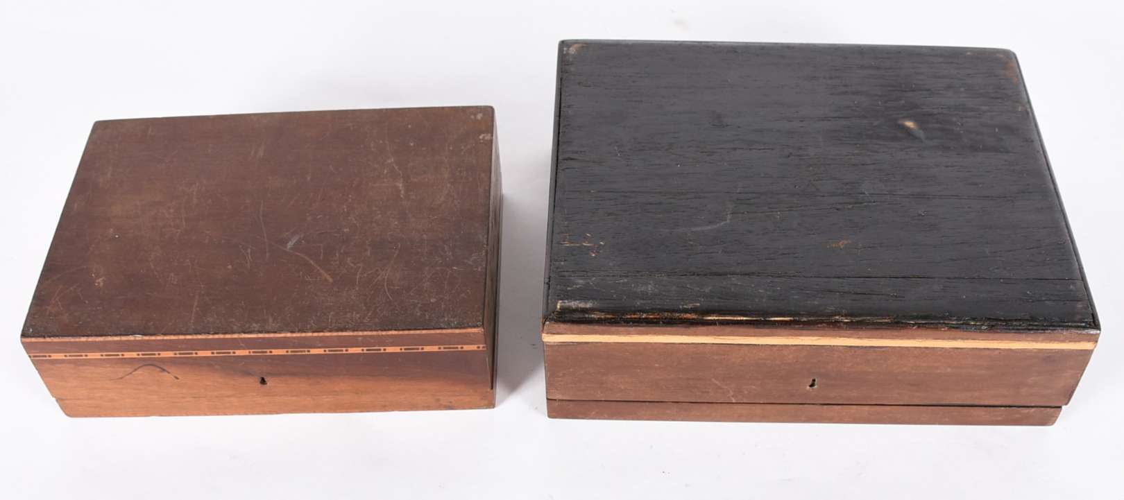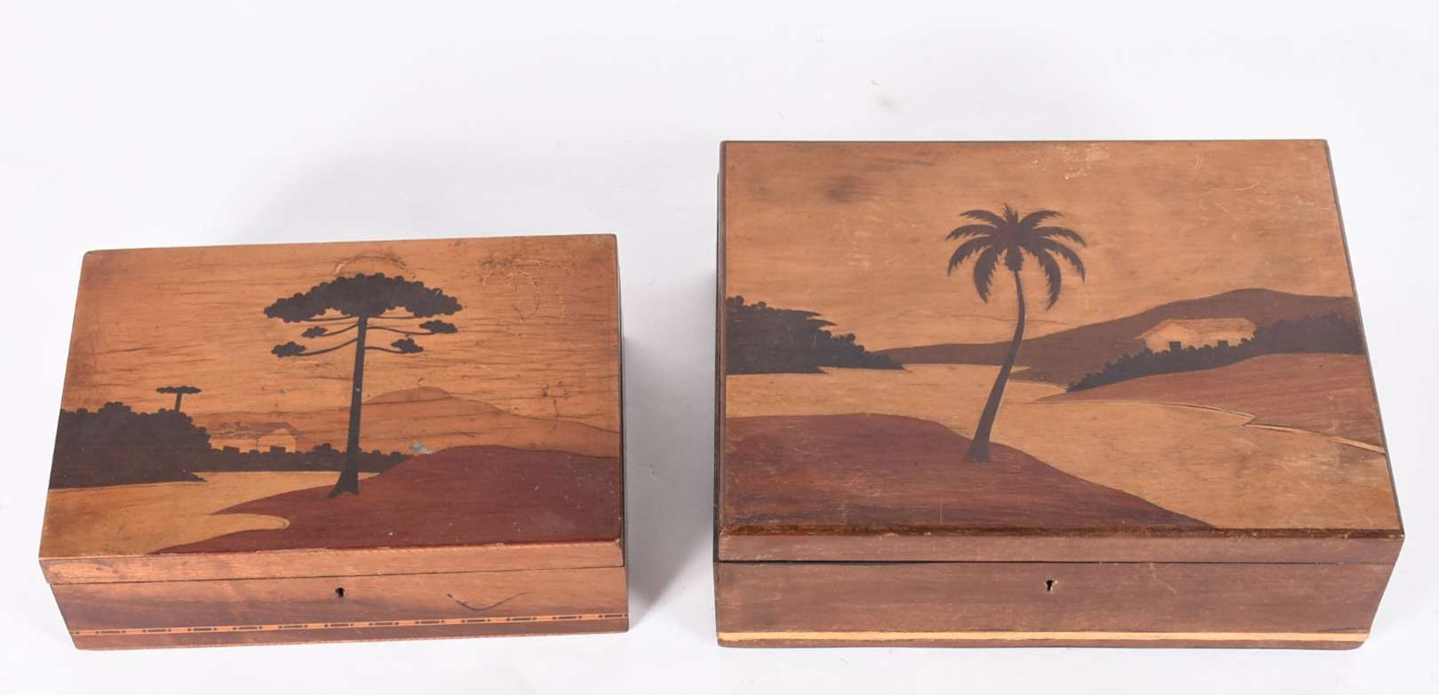 Duas caixas de madeira, tampo trabalhado.