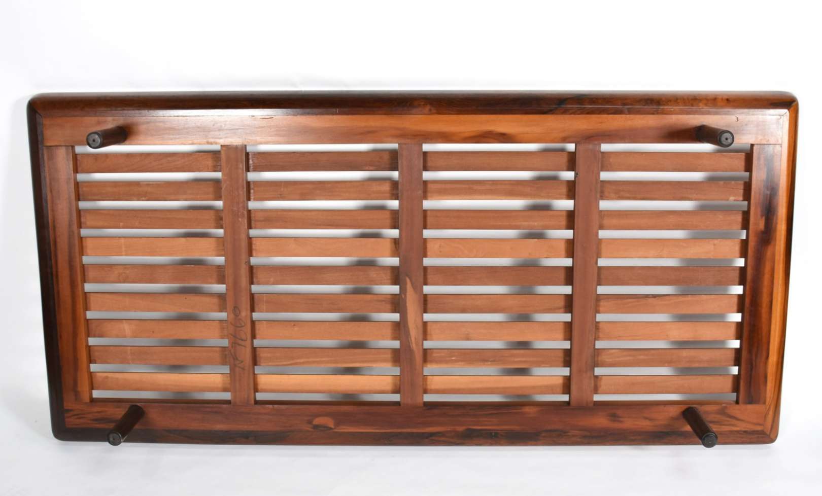 Console de madeira nobre com 4 pernas ligeiramente recurvas unidas por traves inferiores e arremate em pino torneado,...