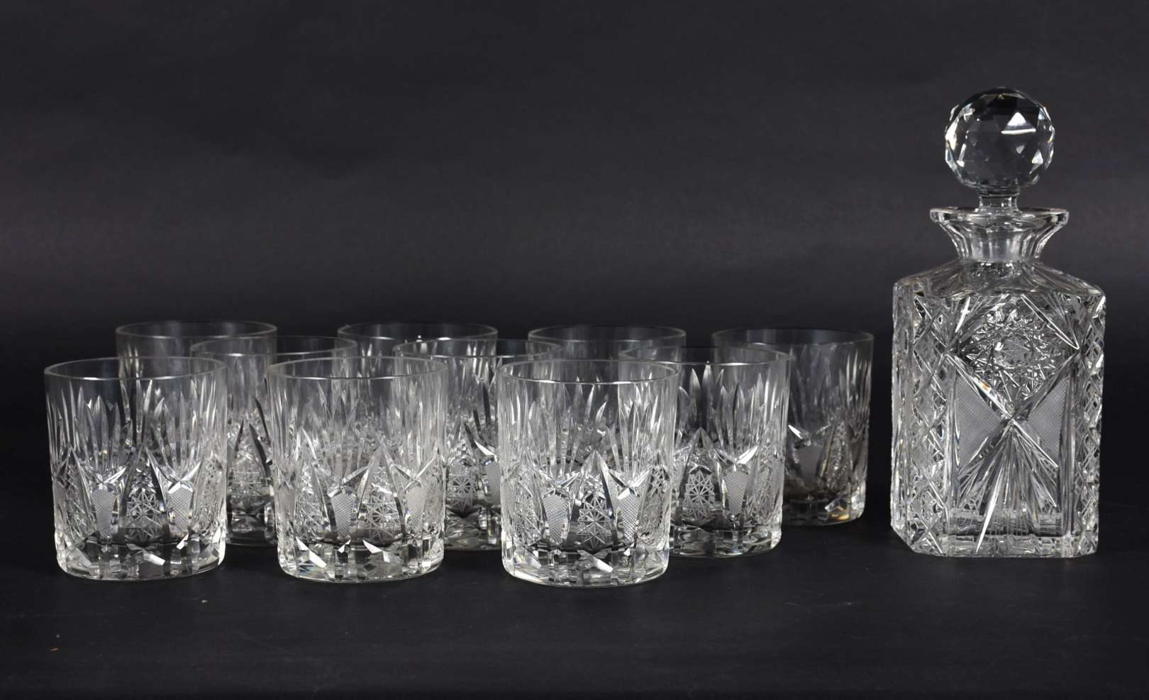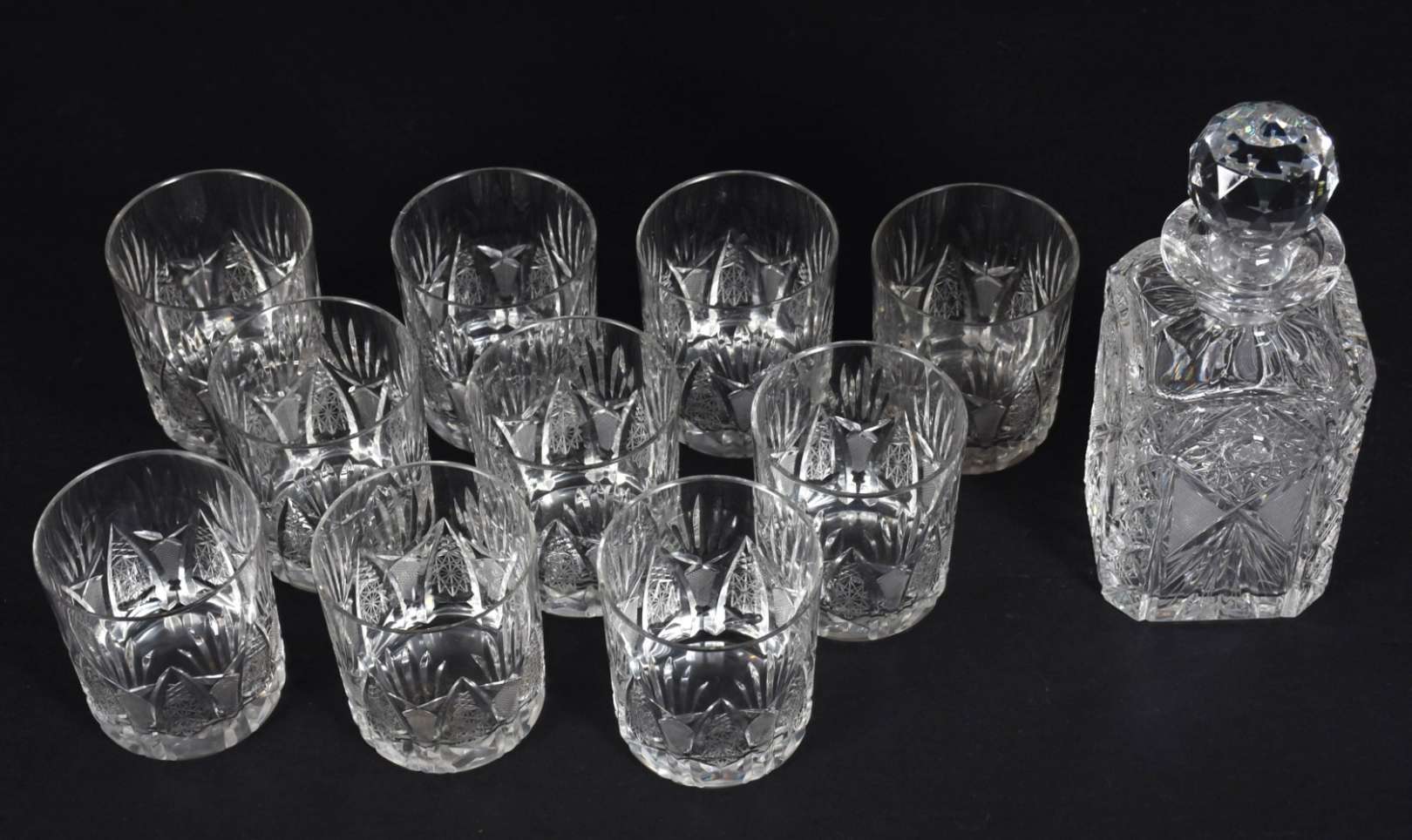 Conjunto de cristal lavrado composto de: 12 cálices para vinho tinto, 12 para vinho branco, 12 flutes, 9 para licor e...