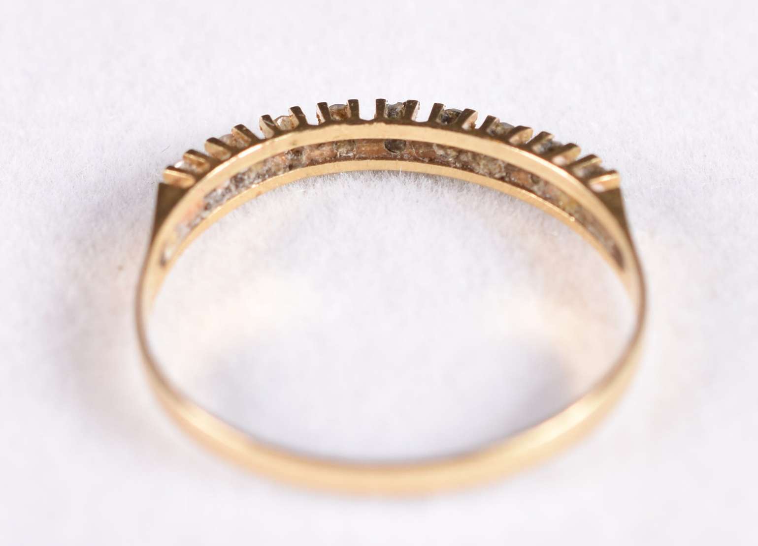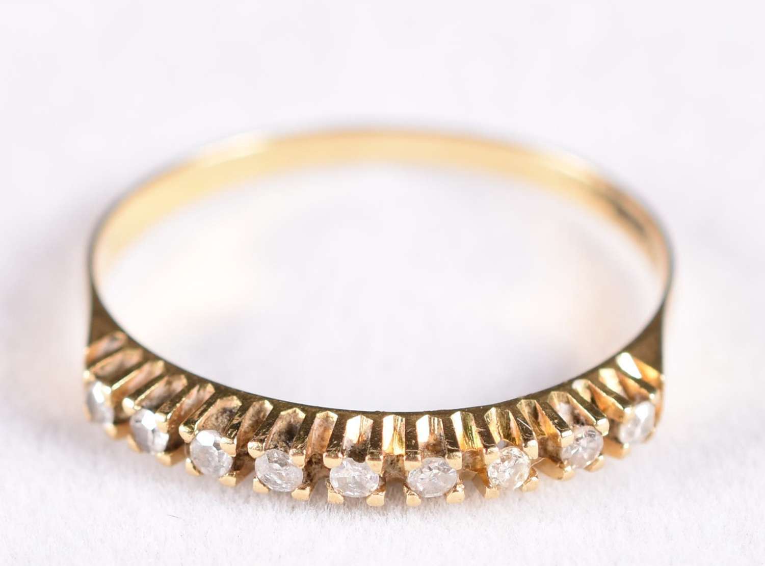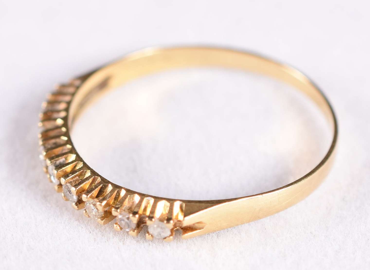 Anel de ouro branco com 10 brilhantes de 0,02 ct, aro 15 (Por motivos de segurança a peça não se encontra na loja).