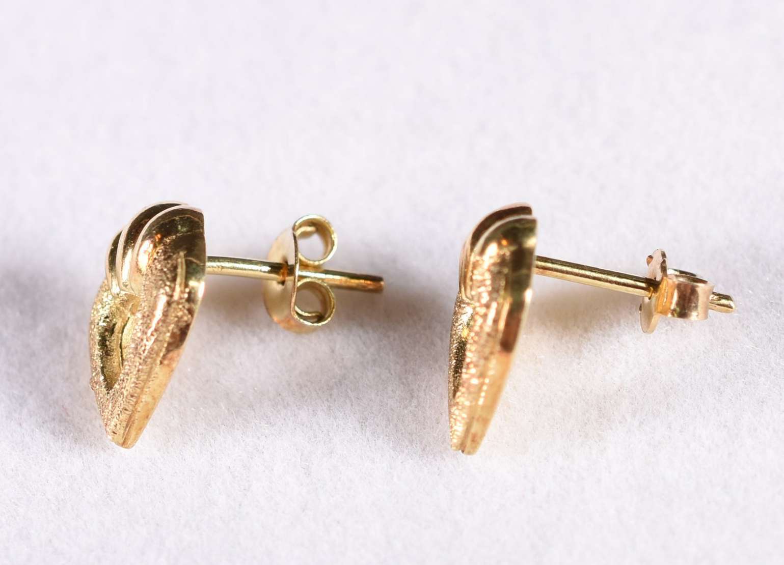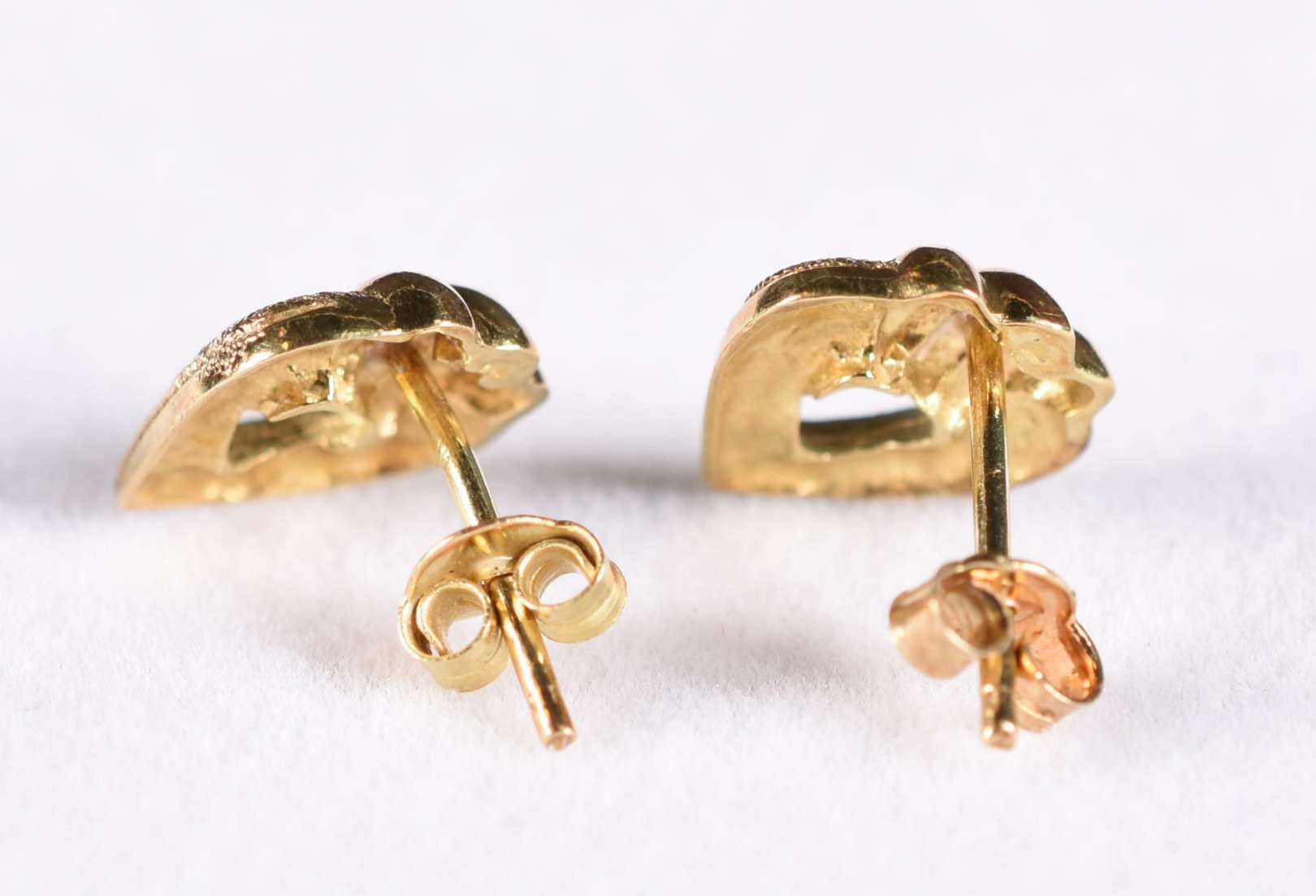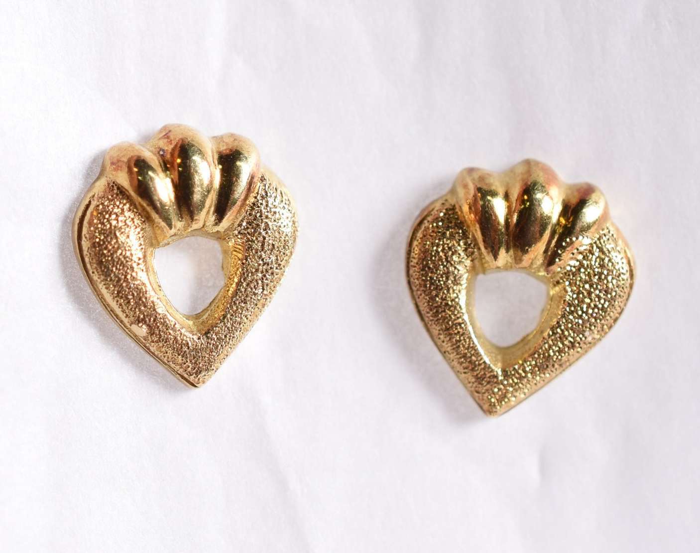 Par de brincos de ouro 18 k no feitio de corações. (Por motivos de segurança a peça não se encontra na loja).