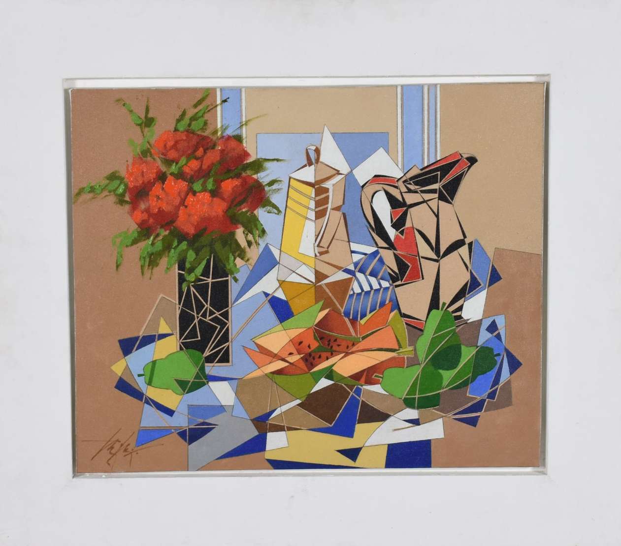 Escola de Geraldo de Barros, década de 1980. Composição geométrica. Laminado plástico colado em Duratex, não assinado...