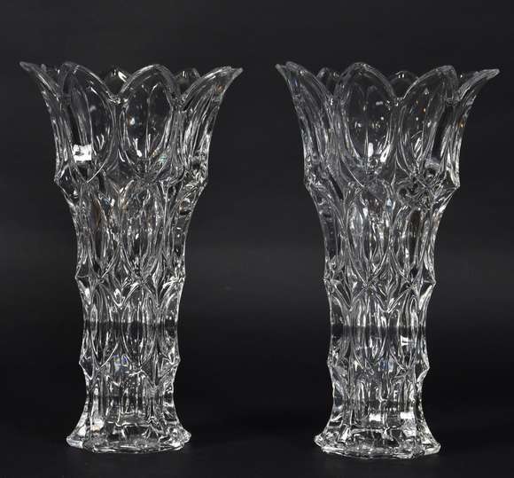 Quatro vasos/solifleur de cristal em diferentes formatos e lapidações.