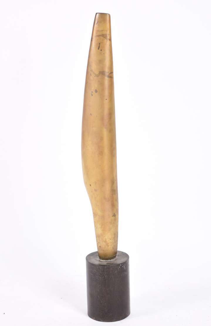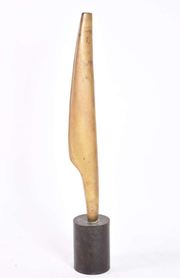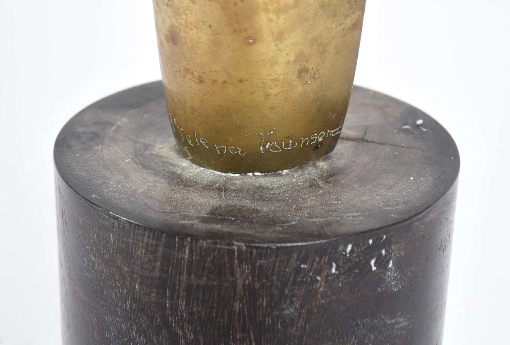 Pequeno busto Art Nouveau de metal representando figura feminina.