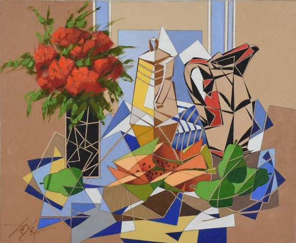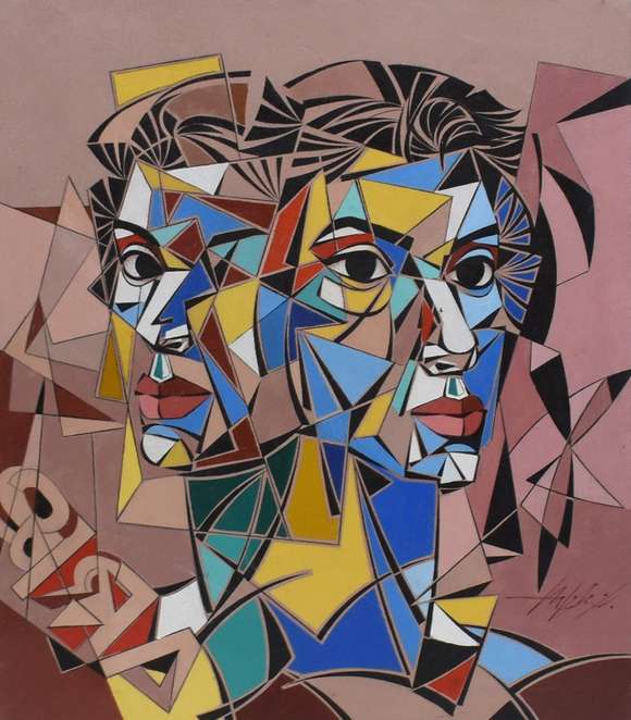 Escola de Geraldo de Barros, década de 1980. Composição geométrica. Laminado plástico colado em Duratex, não assinado...