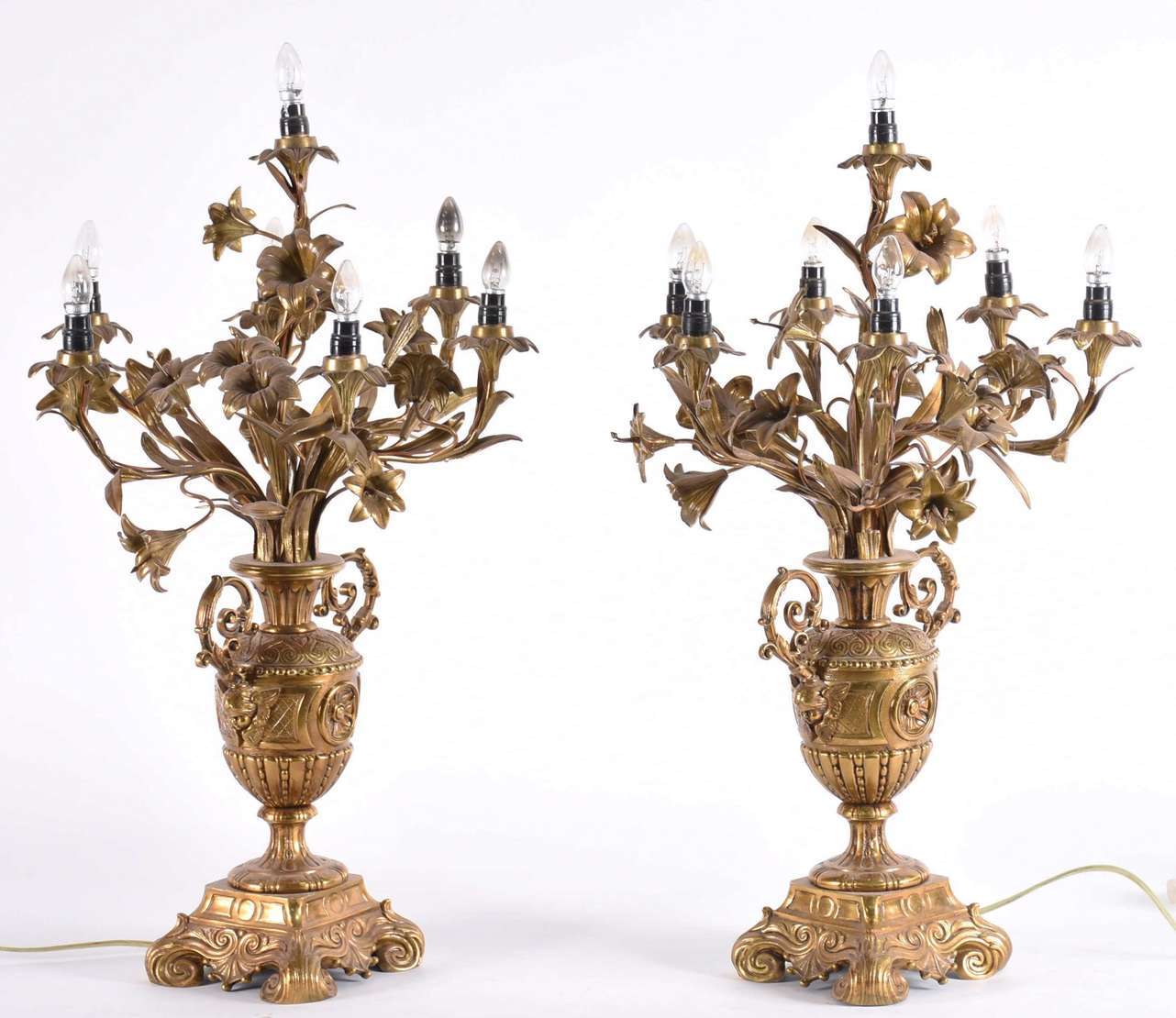 Candelabro para 3 velas em bronze patinado e ormolu. Fundição francesa, século XIX/XX, atribuído a Barbedienne