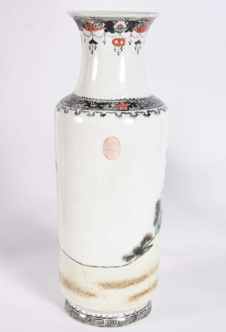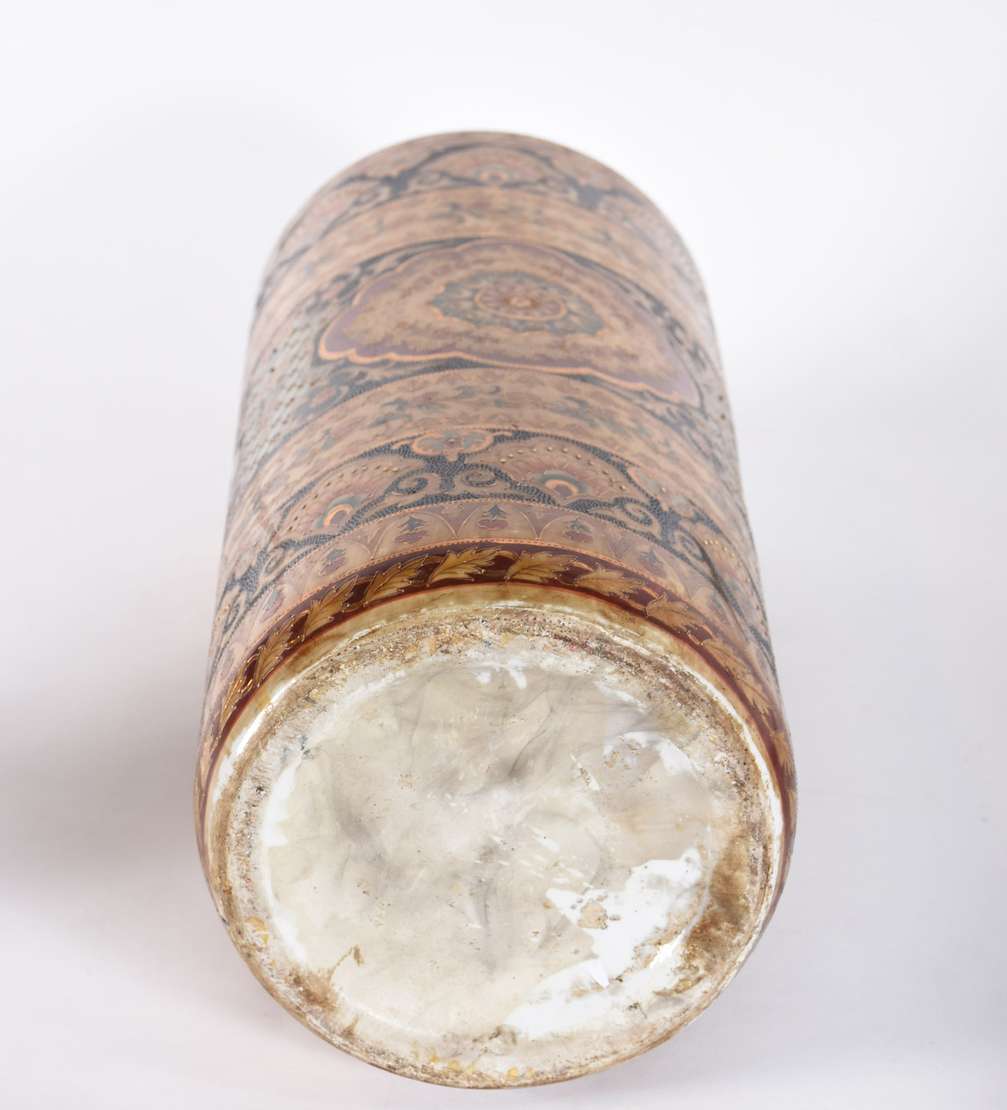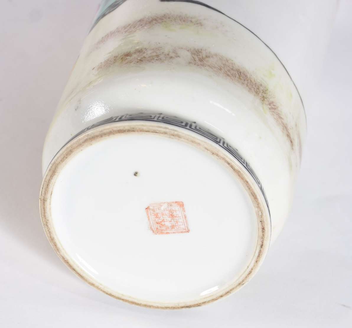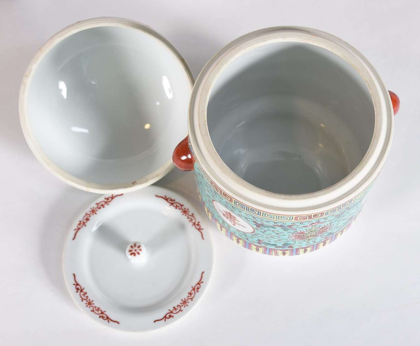 Antigo cachepot feitio sextavado de porcelana oriental ricamente decorada com gueixas e flores policromadas. (tinta f...
