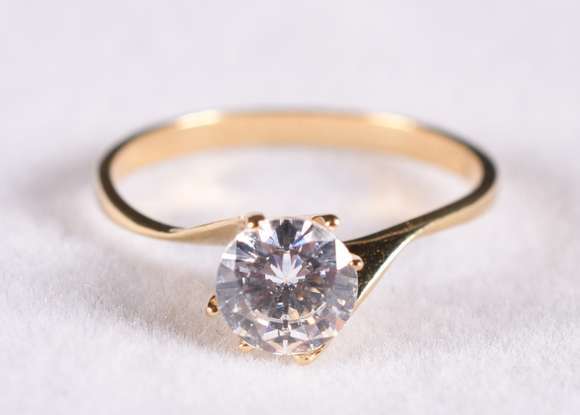 Solitário de ouro 18 k, contraste 750 com uma safira branca, aro 16 (Por motivos de segurança a peça não se encontra ...