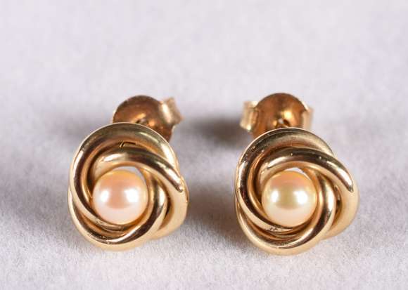 Par de brincos de ouro 18 k, contraste 750 e 2 perolas (Por motivos de segurança a peça não se encontra na loja).