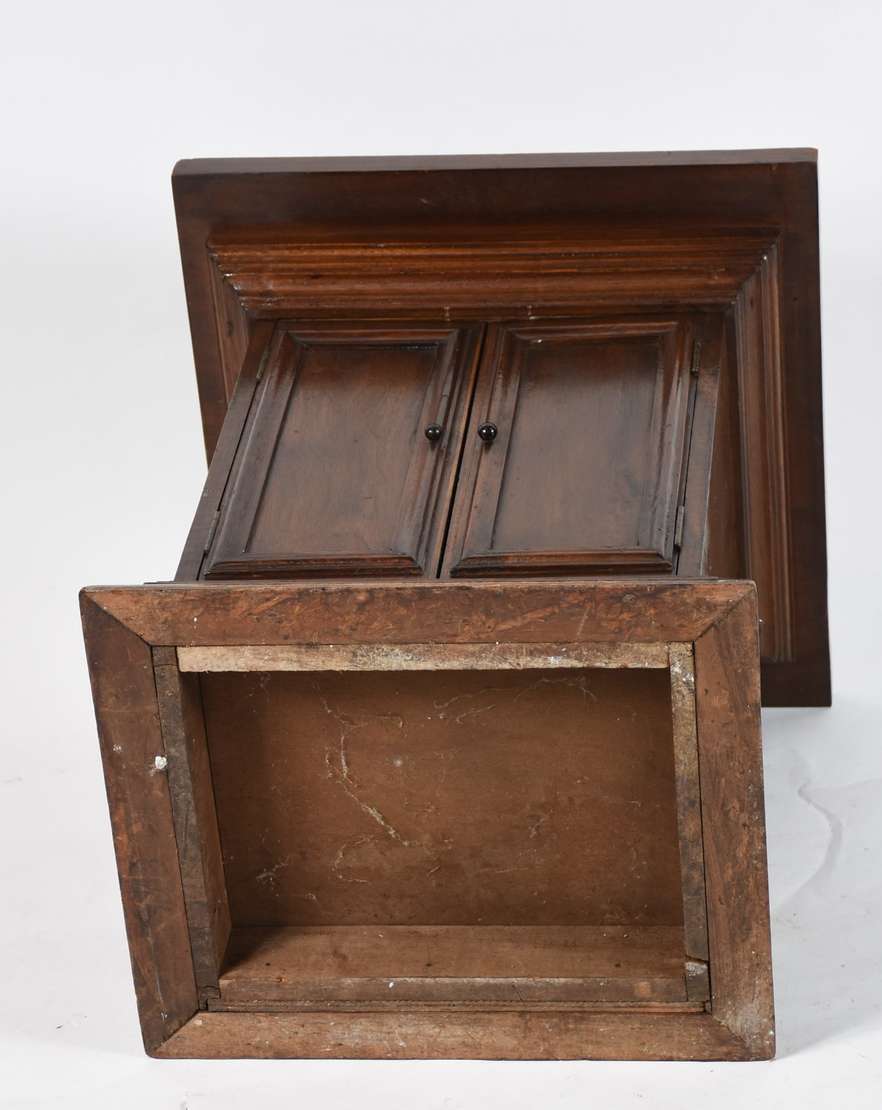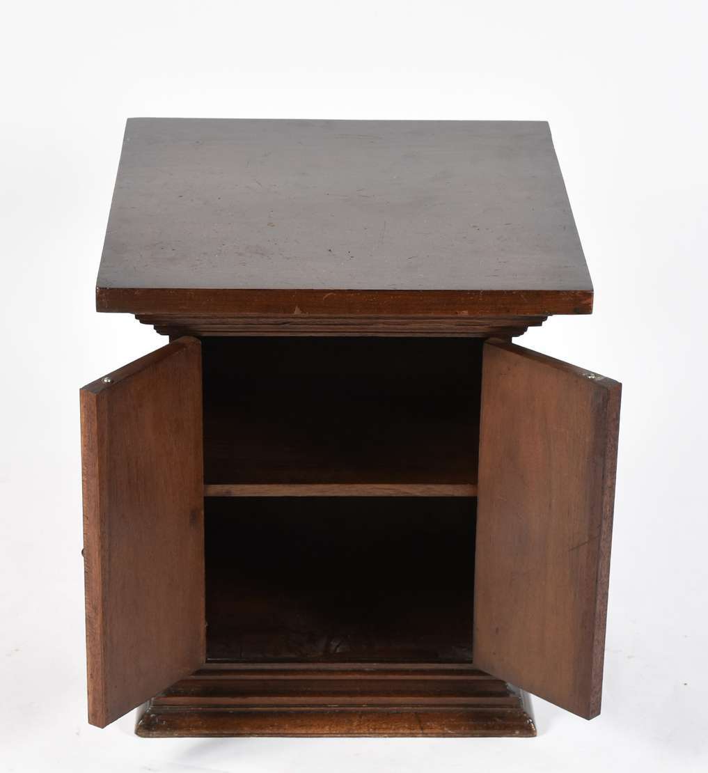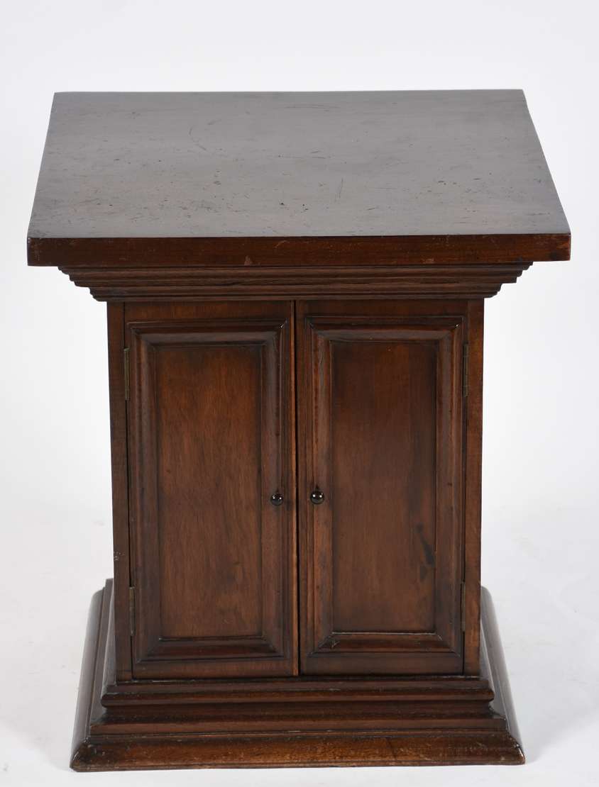 Móvel Arquivo de madeira nobre patinada, porta de esteirinha.
