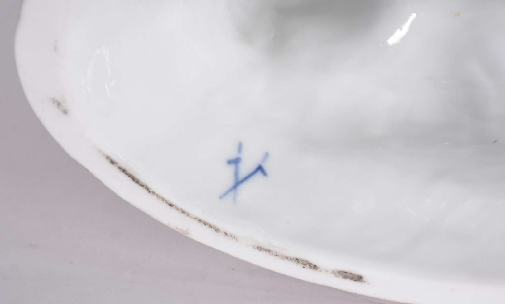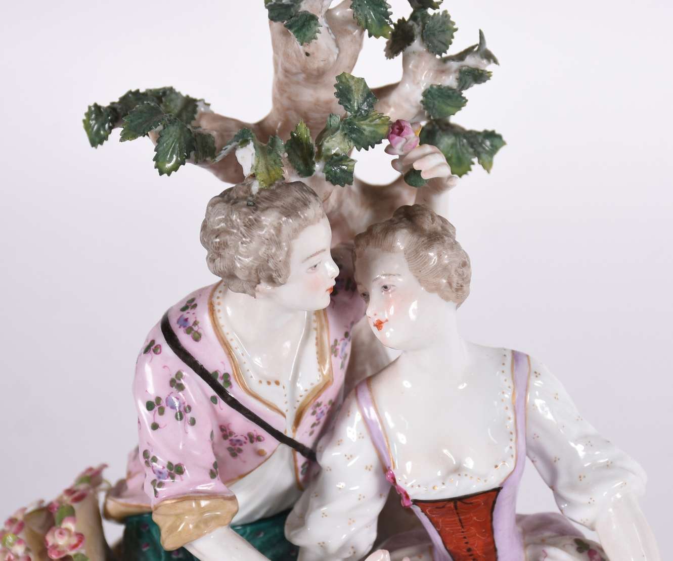 Estatueta de porcelana representando menina com rosa na mão.