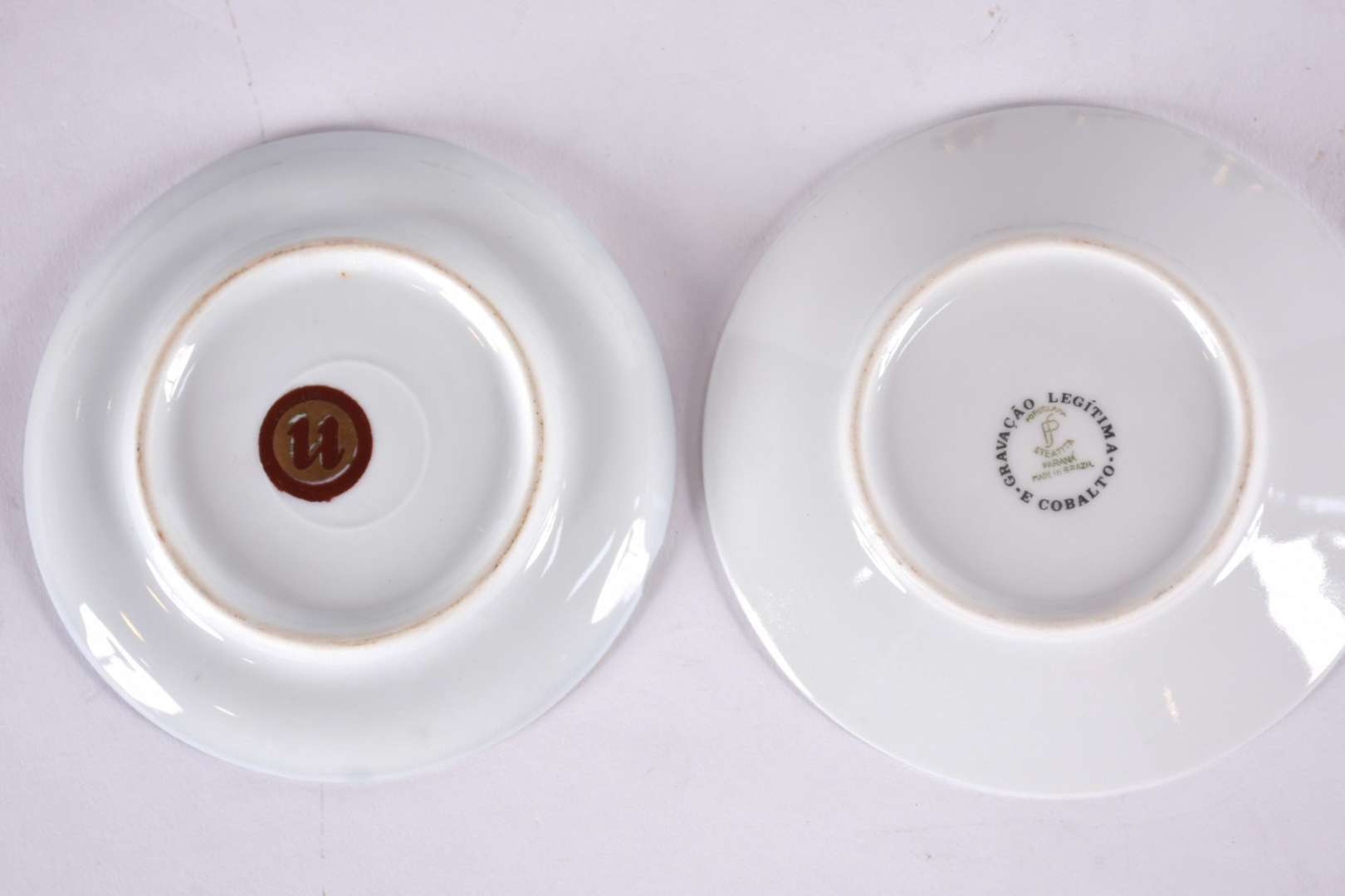 Duas mesas de madeira nobre, sendo uma de centro e outra lateral, bases em coluna central terminando em quatro pés en...