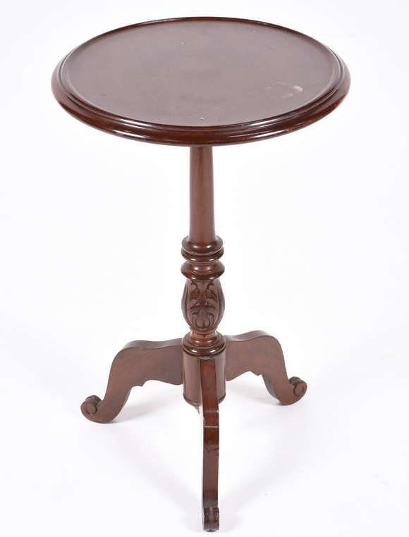 Mesinha redonda de madeira nobre, dia "guéridon", base tripé.