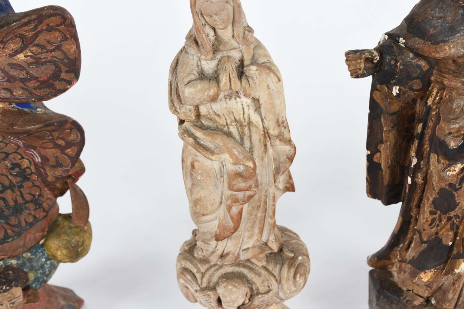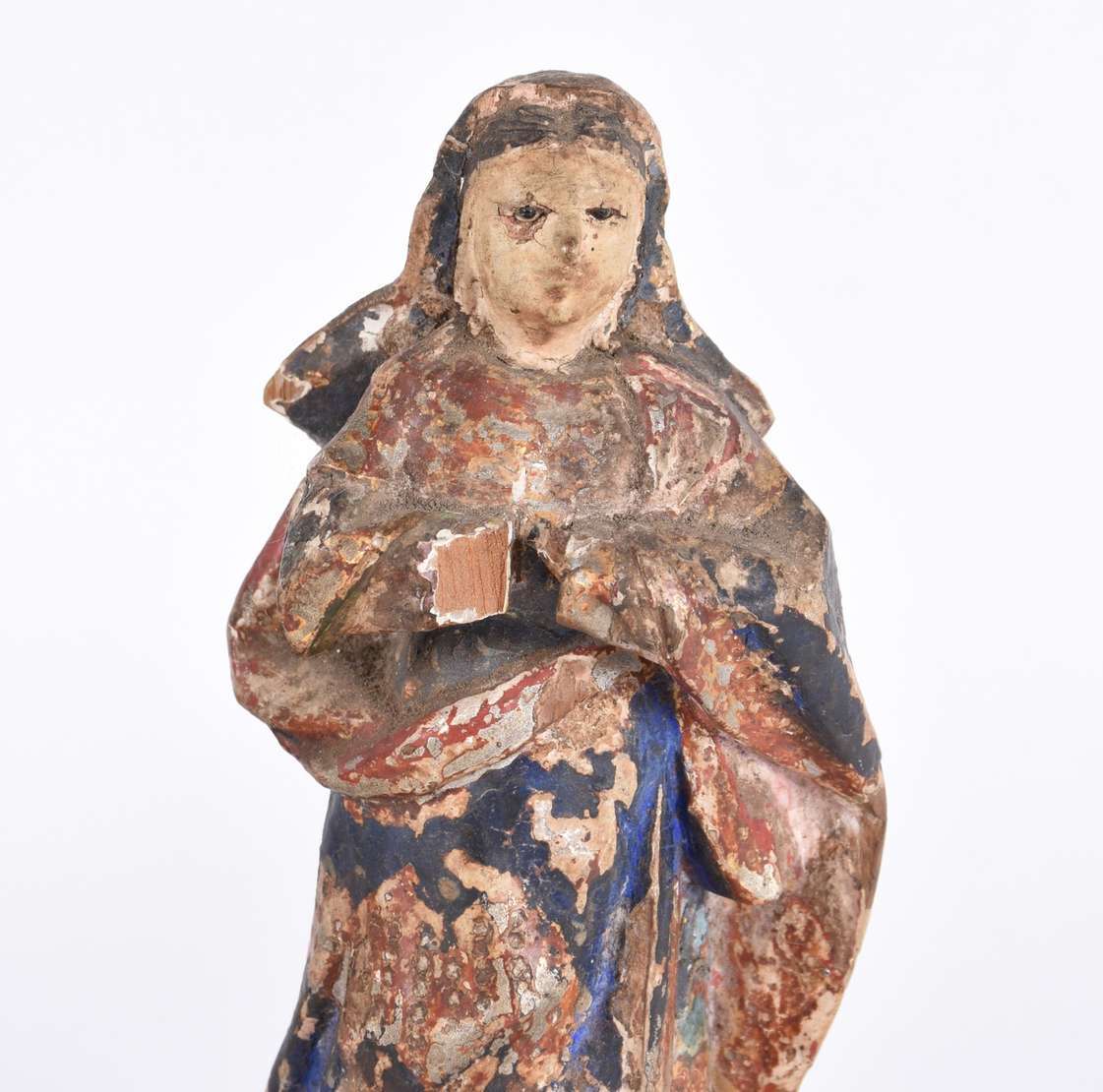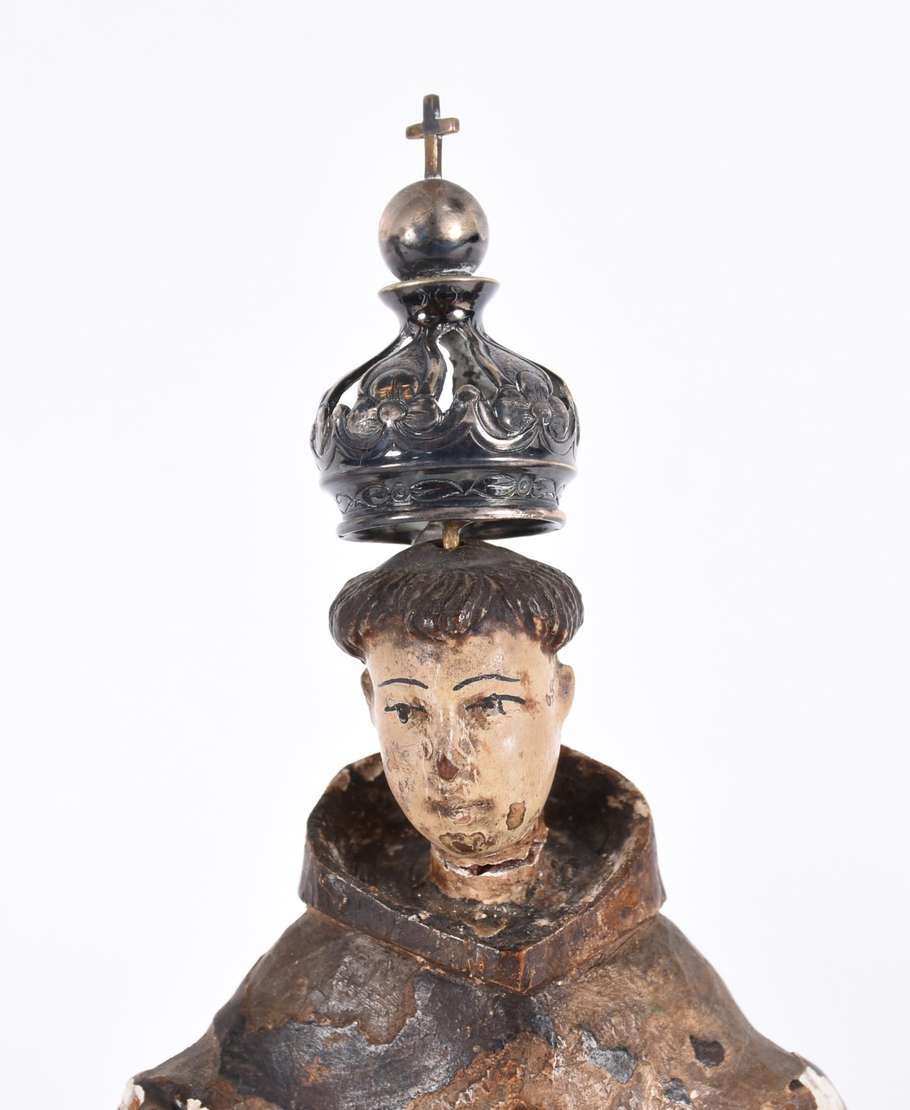 Quatro antigas imagens, sendo tres de madeira policromada representando Nossa Senhora da Conceição e Santo com coroa, e uma Nossa Senhora de pedra sabão (quebrada e colada).