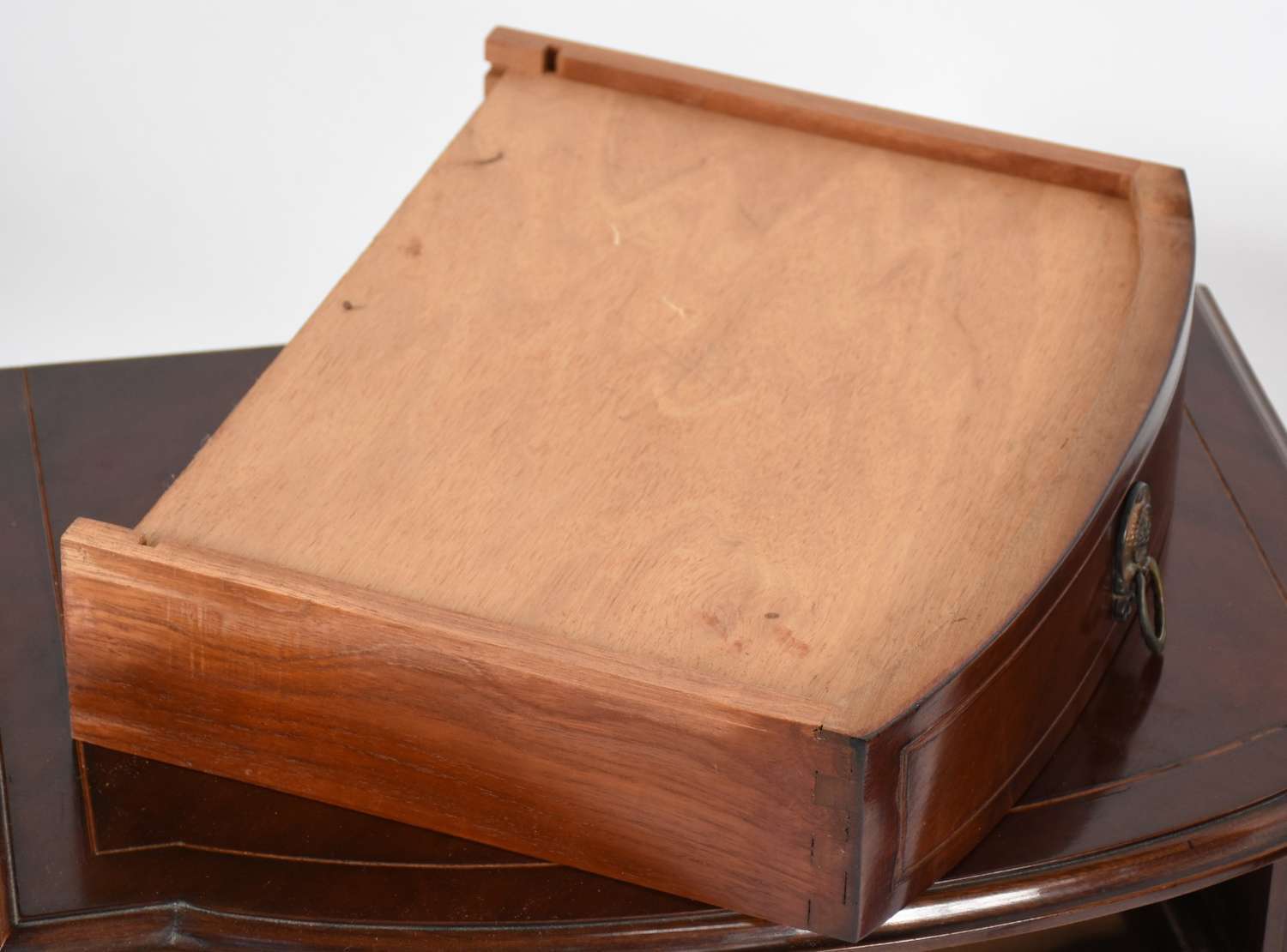 Mesa auxiliar de madeira nobre, saia recortada e pernas entalhadas, uma gaveta.