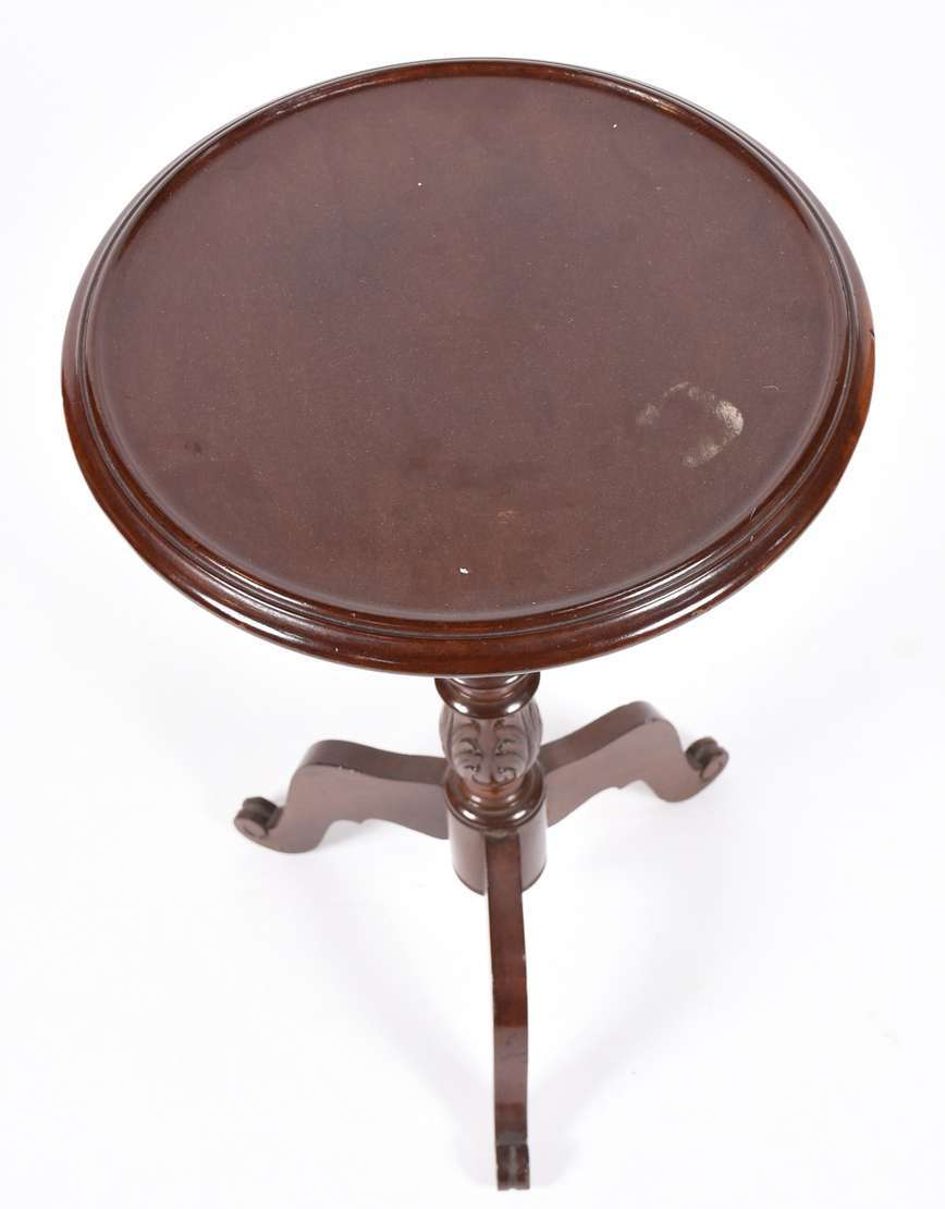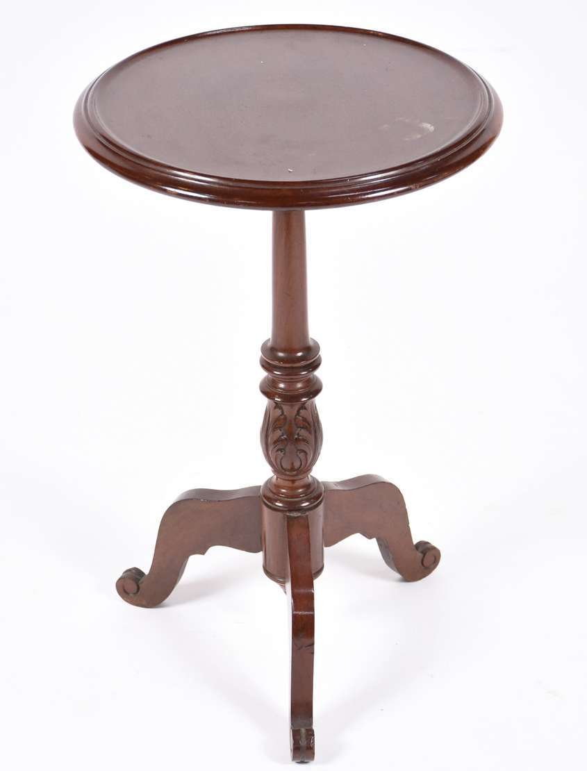 Mesa auxiliar de madeira nobre, saia recortada e pernas entalhadas, uma gaveta.