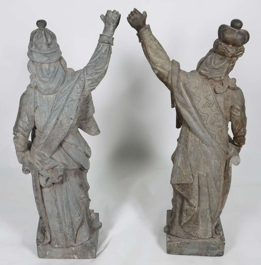 Par de estatuetas de petit bronze, representando casal de nobres, base de madeira.
