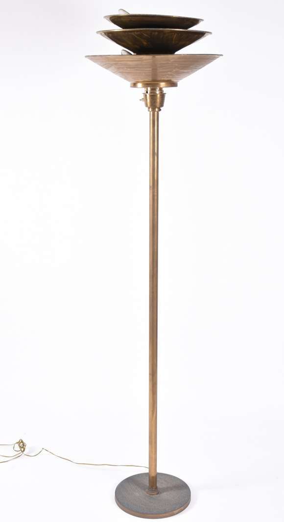 Luminária de pé em metal dourado, oxidado. Anos 60.