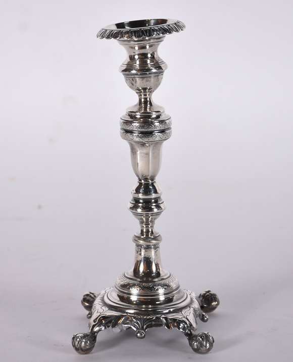 Castiçal de prata contraste 10 Dinheiros. Peso da prata: 340 g (Por motivos de segurança a peça não se encontra na loja)
