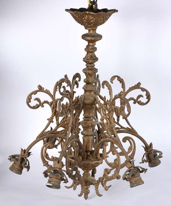 Lustre de bronze para 6 luzes.