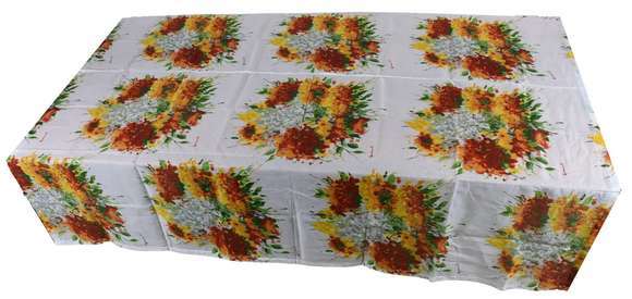 Duas toalhas de mesa, sendo uma bege com bordados e outra de linho azul com bordados.