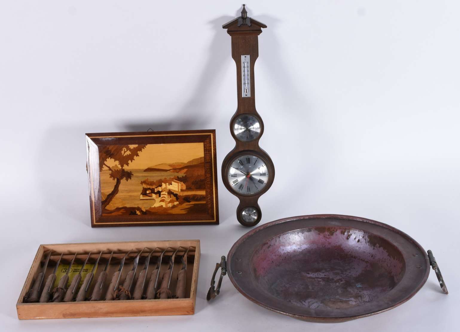 Dez peças diversas de prata de lei. Peso da prata: 950 g/ Peso da caixa com interior de madeira: 350 g /Total: 1300 g...