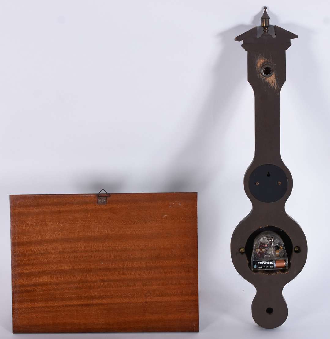 Relógio de parede com caixa de madeira trabalhada encimada por figura de "águia" em metal.