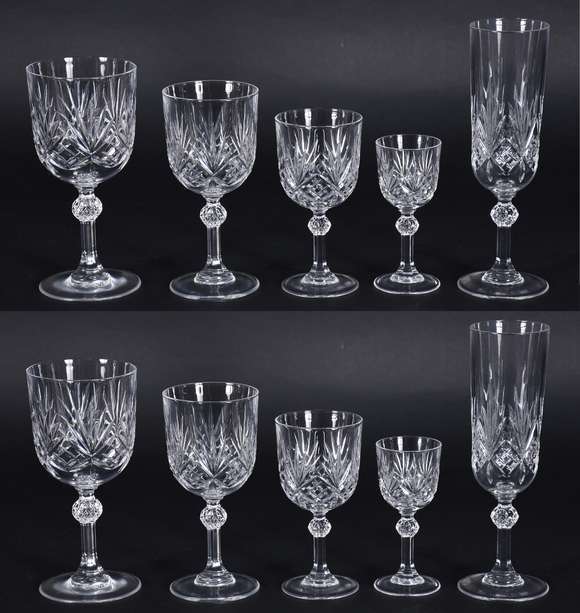 Serviço de copos de cristal lapidado, composto de:12 flutes para champagne,12 cálices para vinho tinto,12 para vinho ...