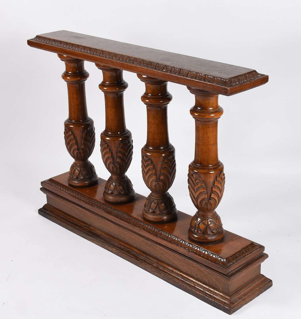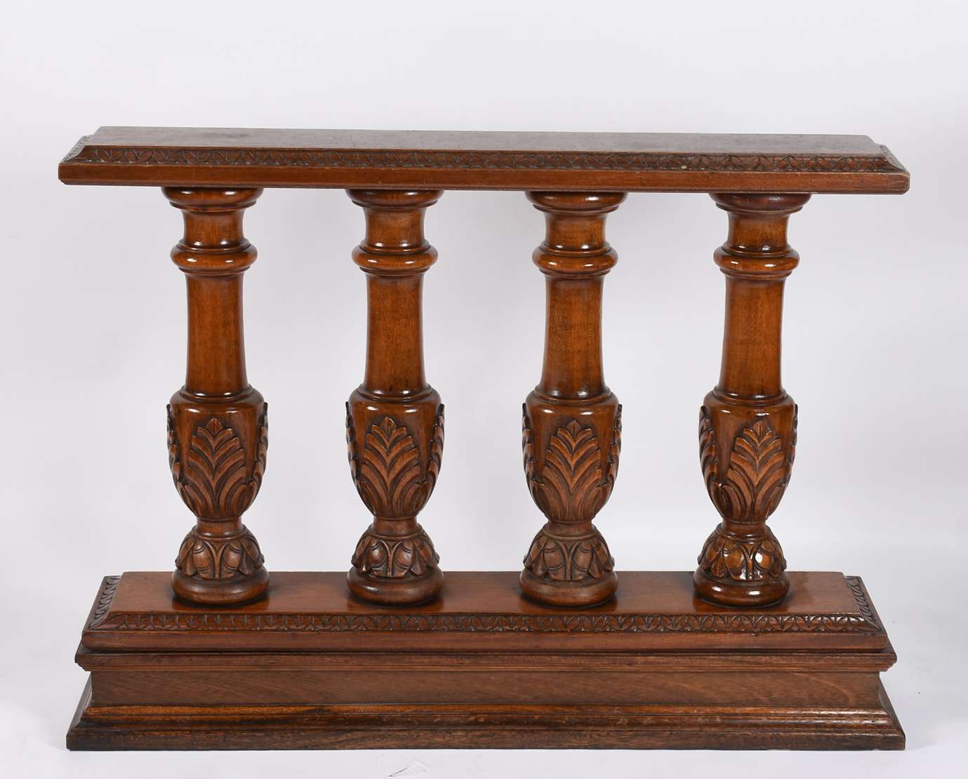 Carrinho de chá de jacarandá, abas laterais, platô inferior com cercadura de pinos torneados, sobre rodízios (tampo c...