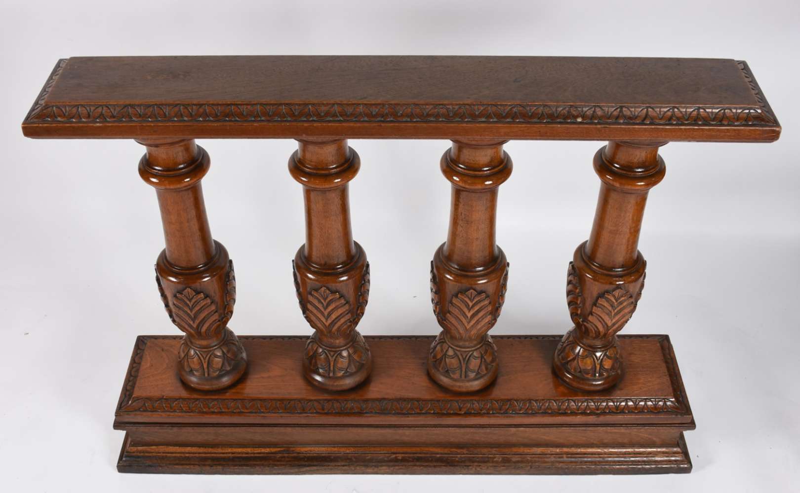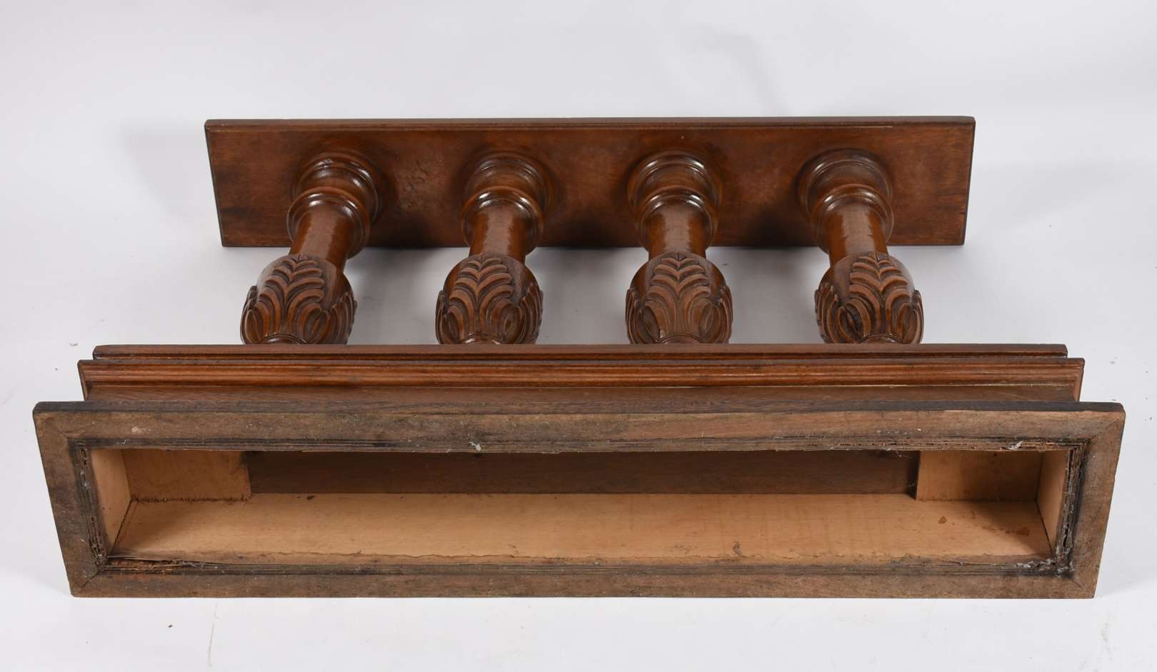 Móvel de madeira nobre com tampo retangular e duas gavetas, apoio em quatro pernas torneadas, alçada com duas portas ...
