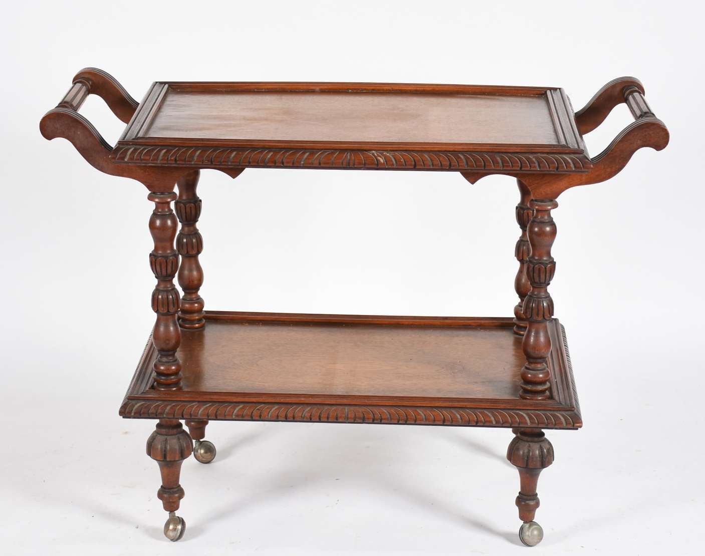 Aparador de madeira nobre, saia recortada, apoio em quatro pernas recurvas ligadas por traves inferiores em "X" e arr...