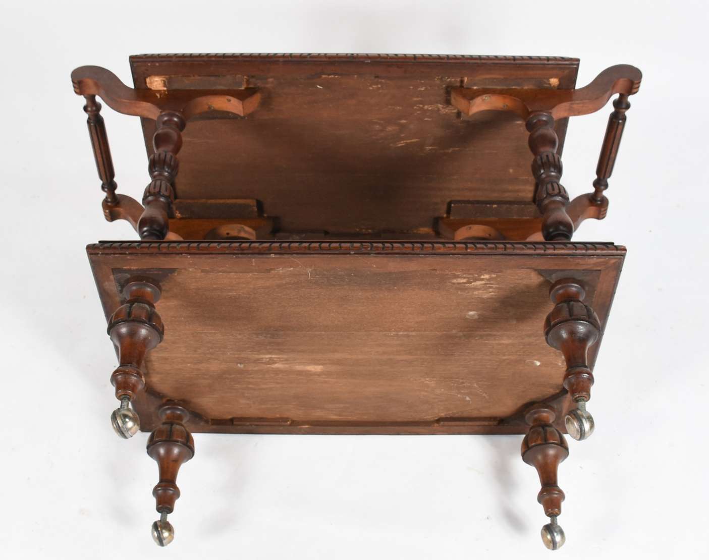 Mesa ninho de madeira nobre com 4 mesinhas de encaixar (uma delas com aba quebrada), pernas torneadas.