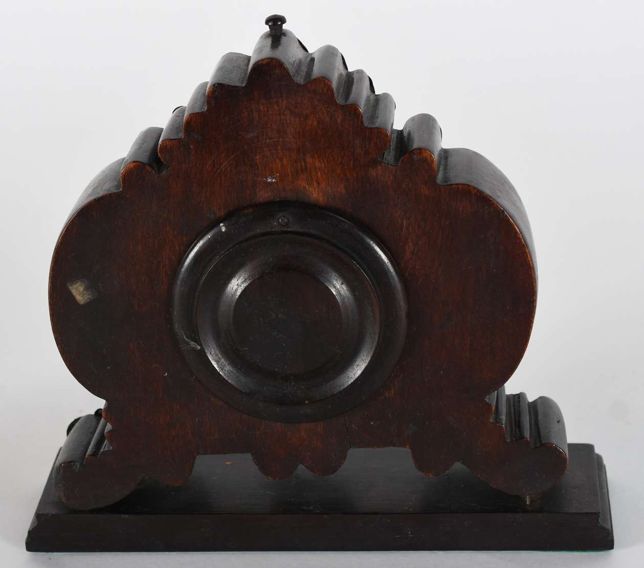 Relógio de parede com caixa de madeira trabalhada encimada por figura de "águia" em metal.