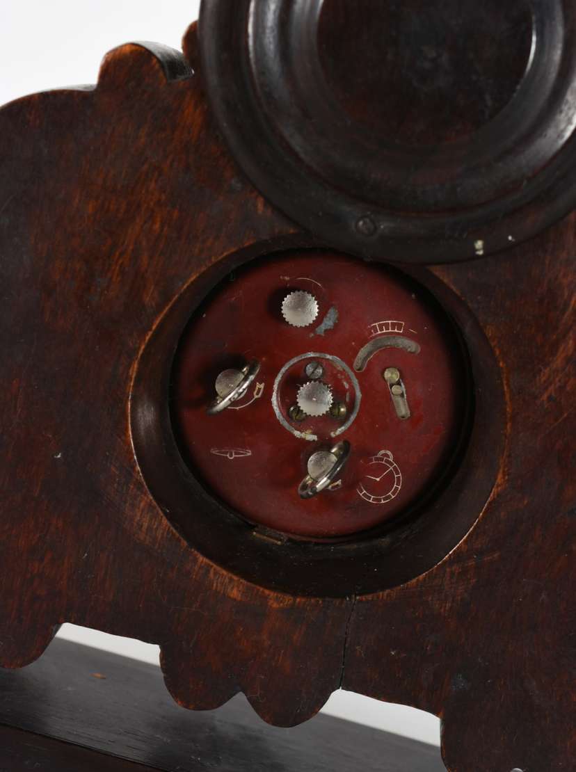 Quatro peças diversas, sendo: barômetro, estojo com talheres para churrasco, bacia de cobre com alças laterais e plac...