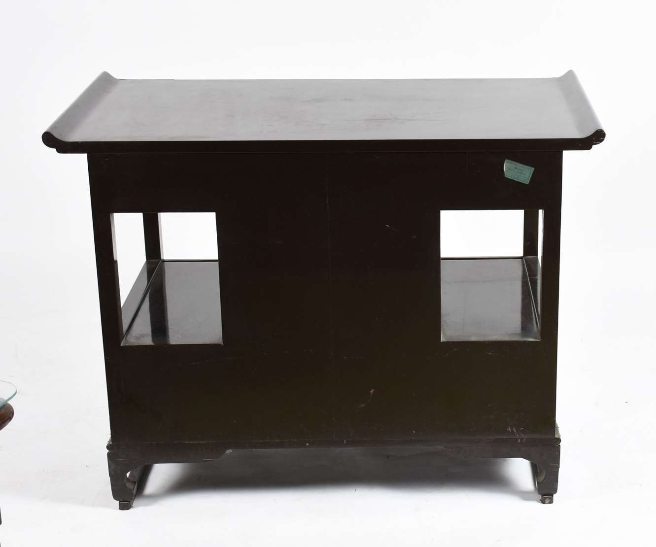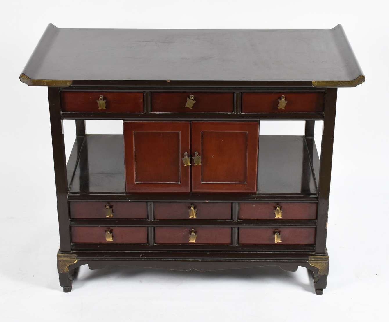 Aparador de madeira nobre, base com 2 "puccis" de madeira laqueada de preto, tampo de mármore (guirlanda de trás de m...