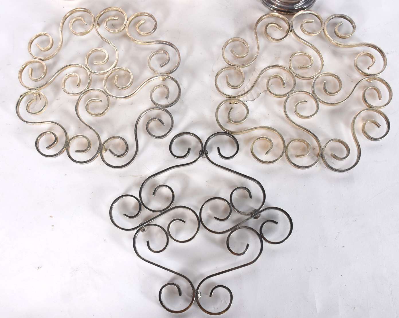 Diversas peças de metal prateado, sendo: par de candelabros para 3 velas cada Christofle, jarra para água e bandeja F...
